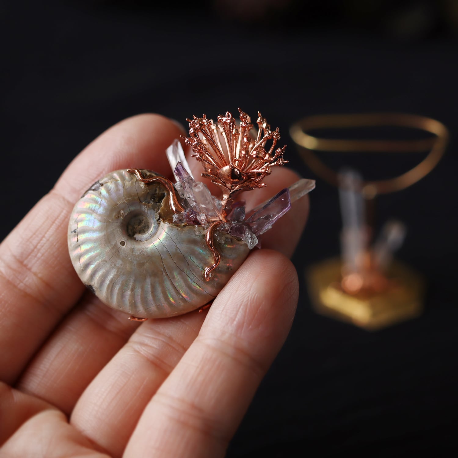 銅化した本物の植物と鉱物を使ったアートオブジェ。