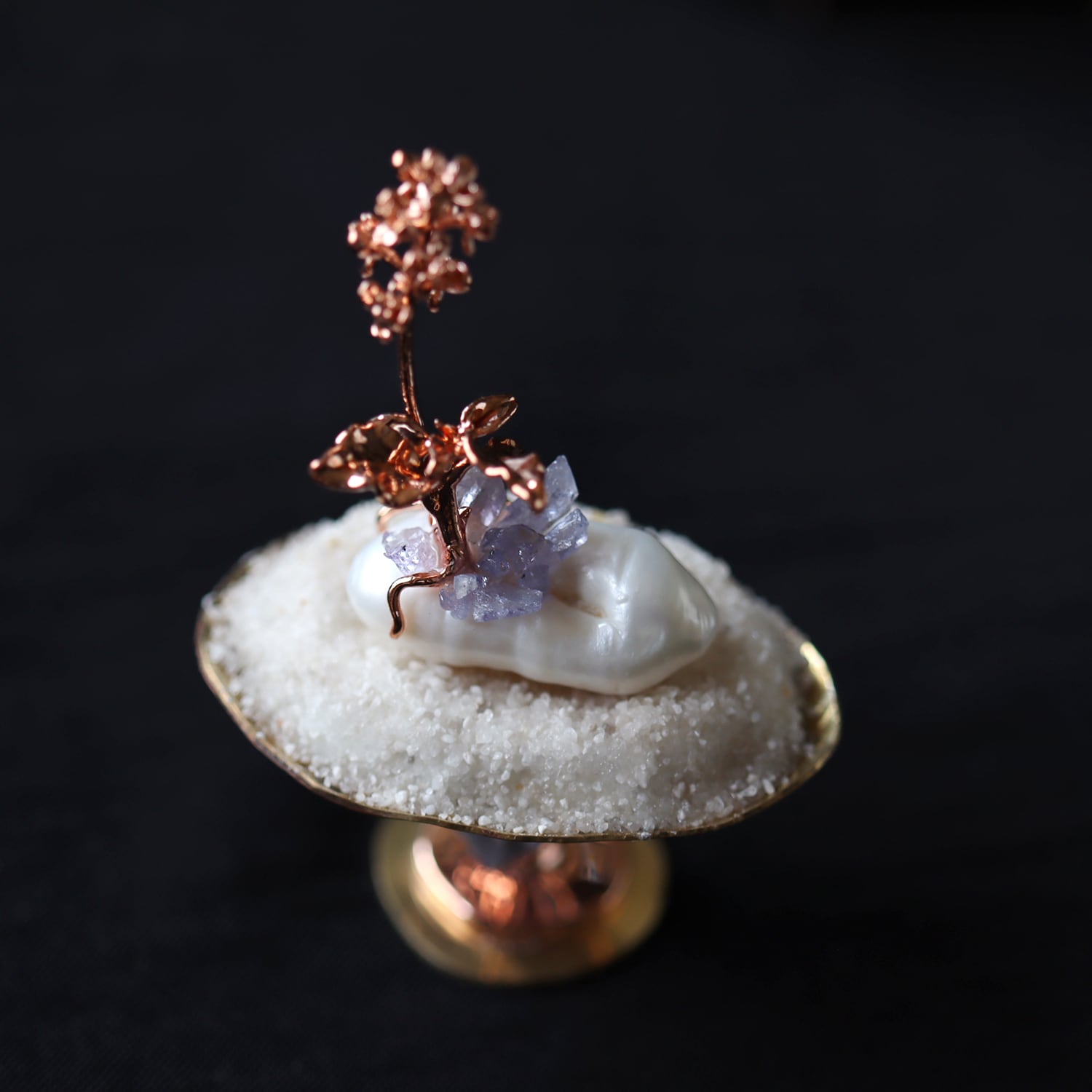 銅化した本物の植物と鉱物を使ったアートオブジェ。