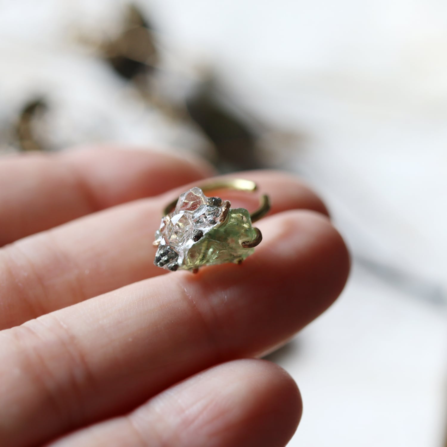 グリーンアパタイトとダイヤモンドクォーツのイヤーカフ