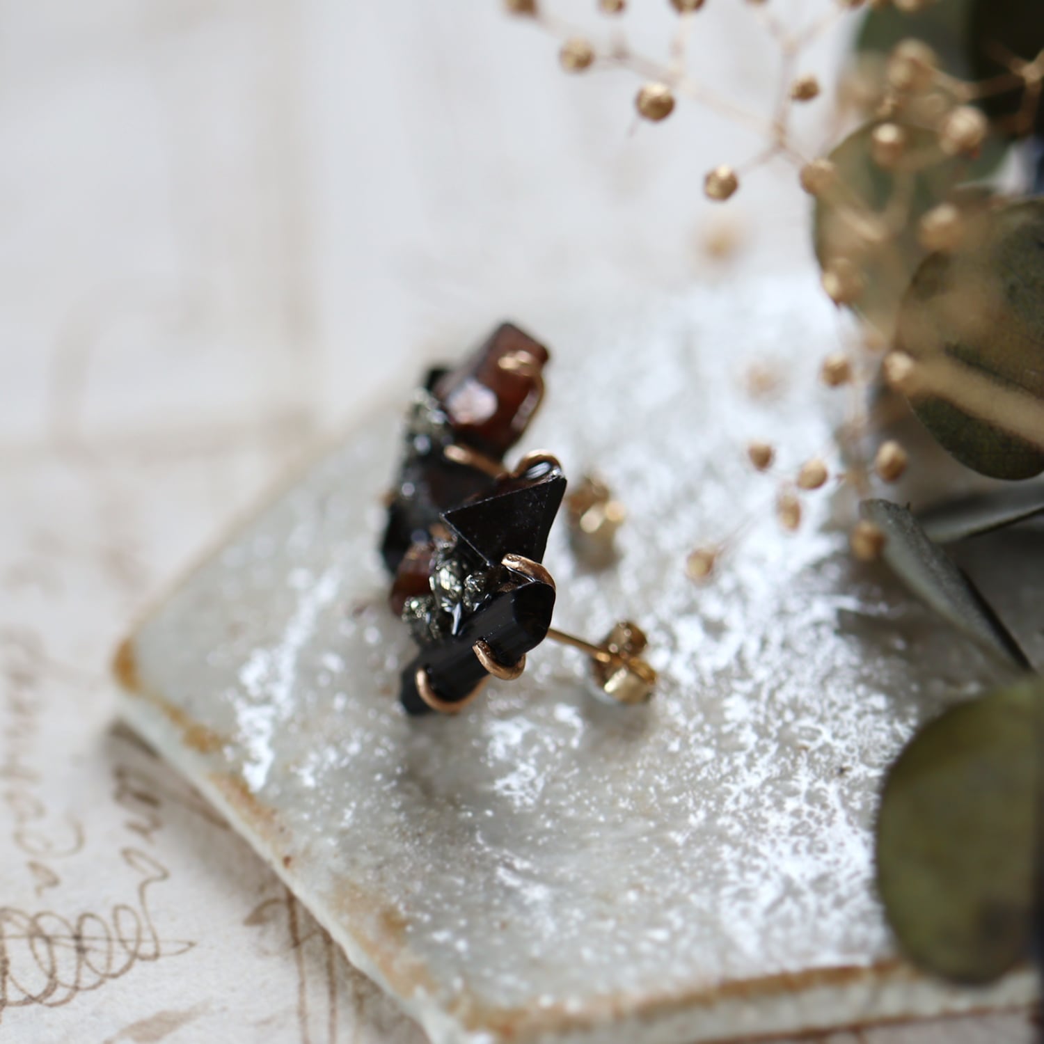 4種類の鉱物が共生し結晶化した、創造上の鉱物「Unionite」のピアス。