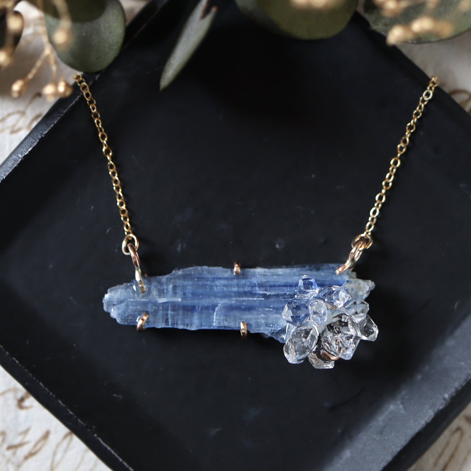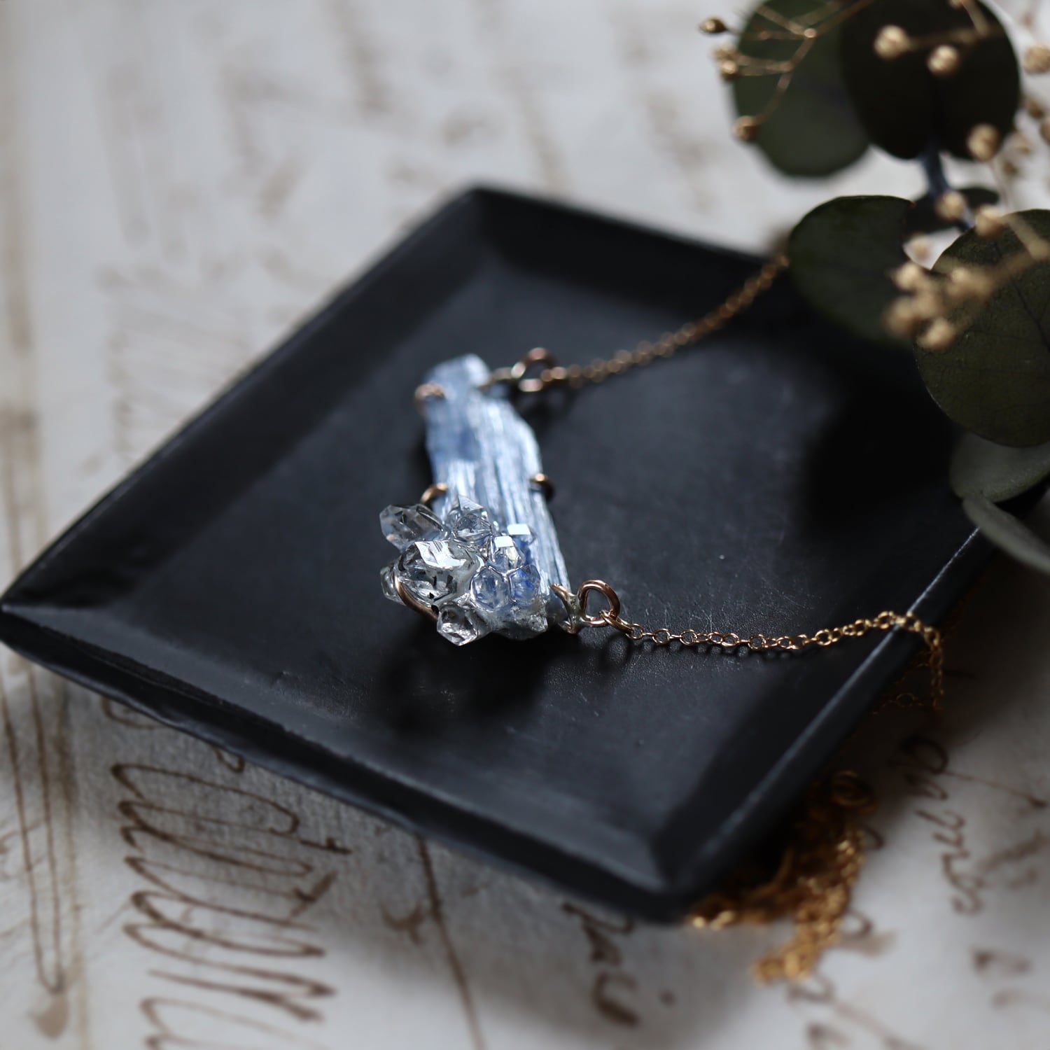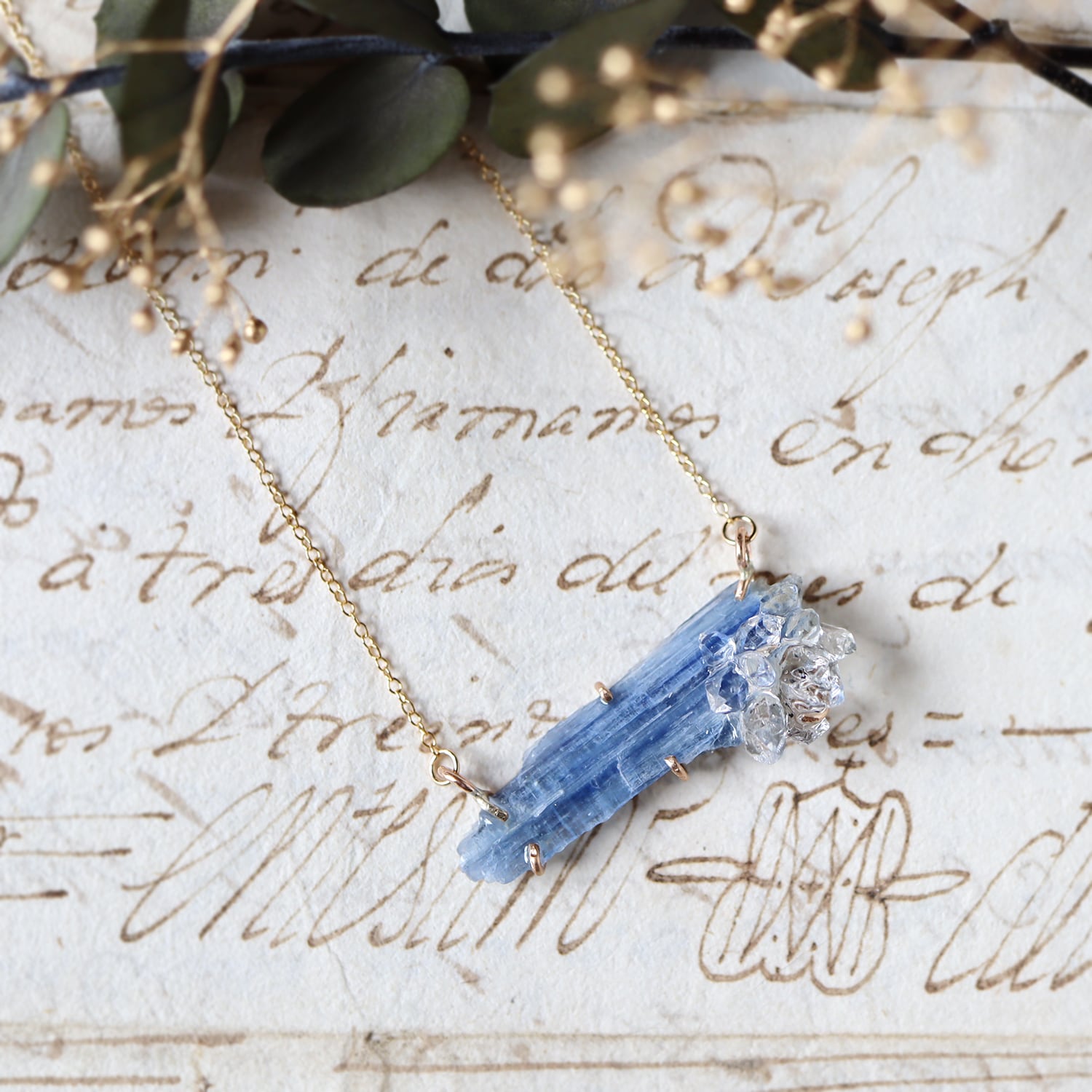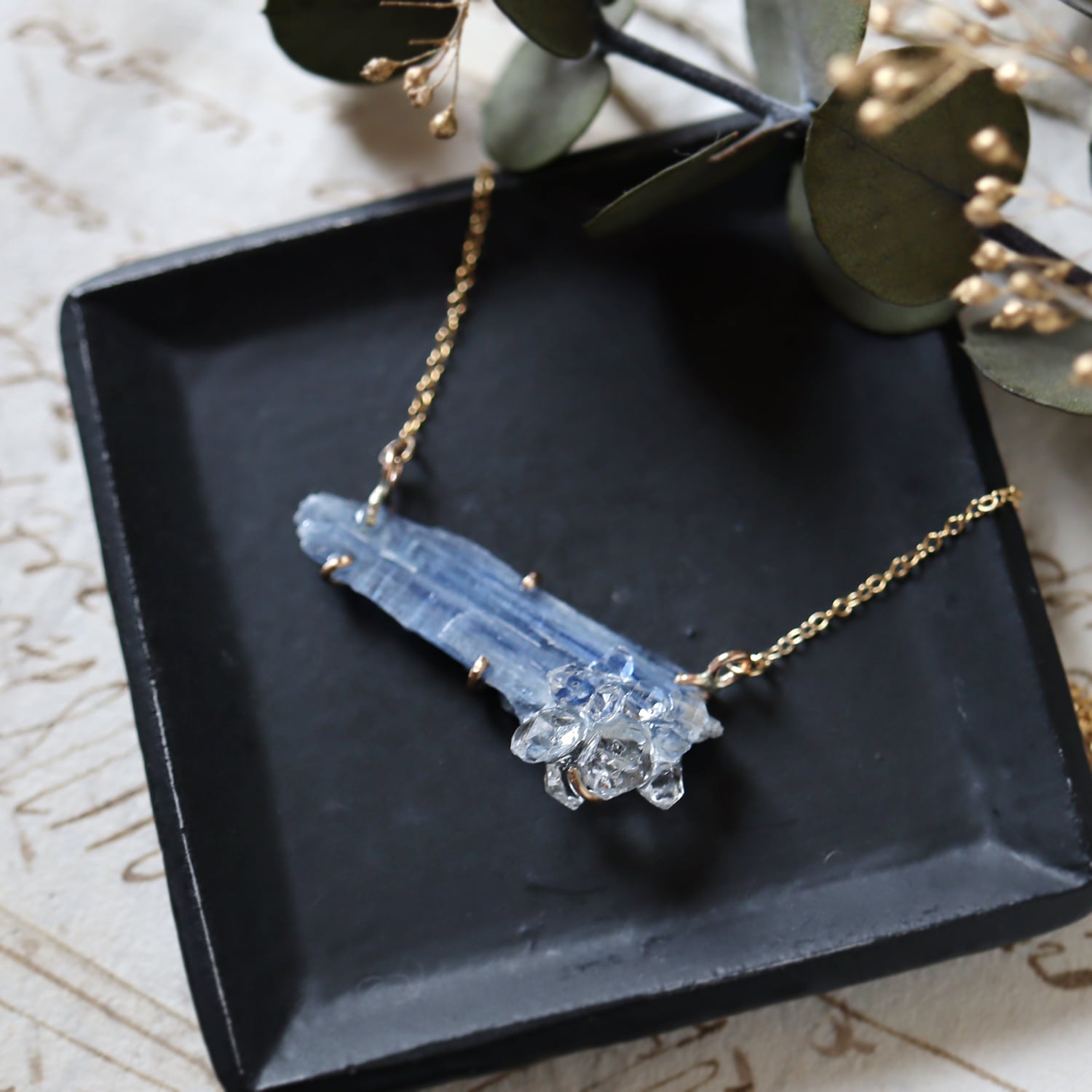 素材:カイヤナイト(ブラジル産/Morro Redondo Mine, Minas Gerais)・ダイヤモンドクォーツ(パキスタン産)・K14ゴールドフィルド