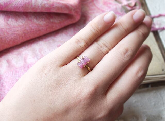 原石らしい質感とボリュームをそのままに、4本の爪で留めてリングにしました。