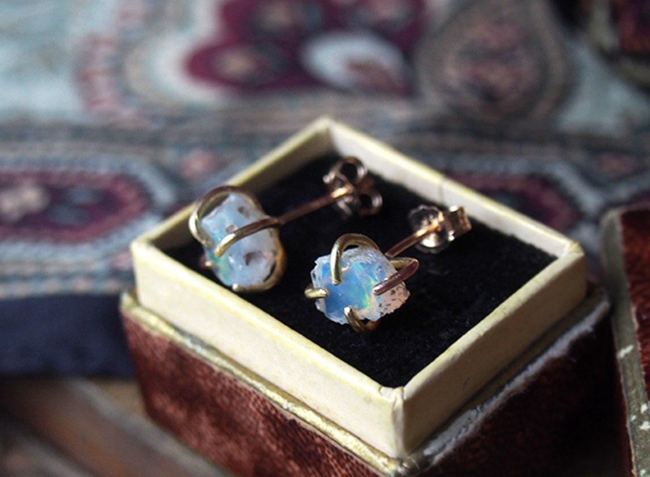原石らしい質感をそのままに、4本の爪でラフに留めたピアスです。