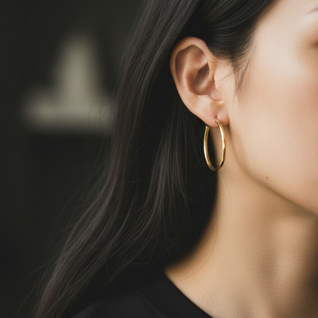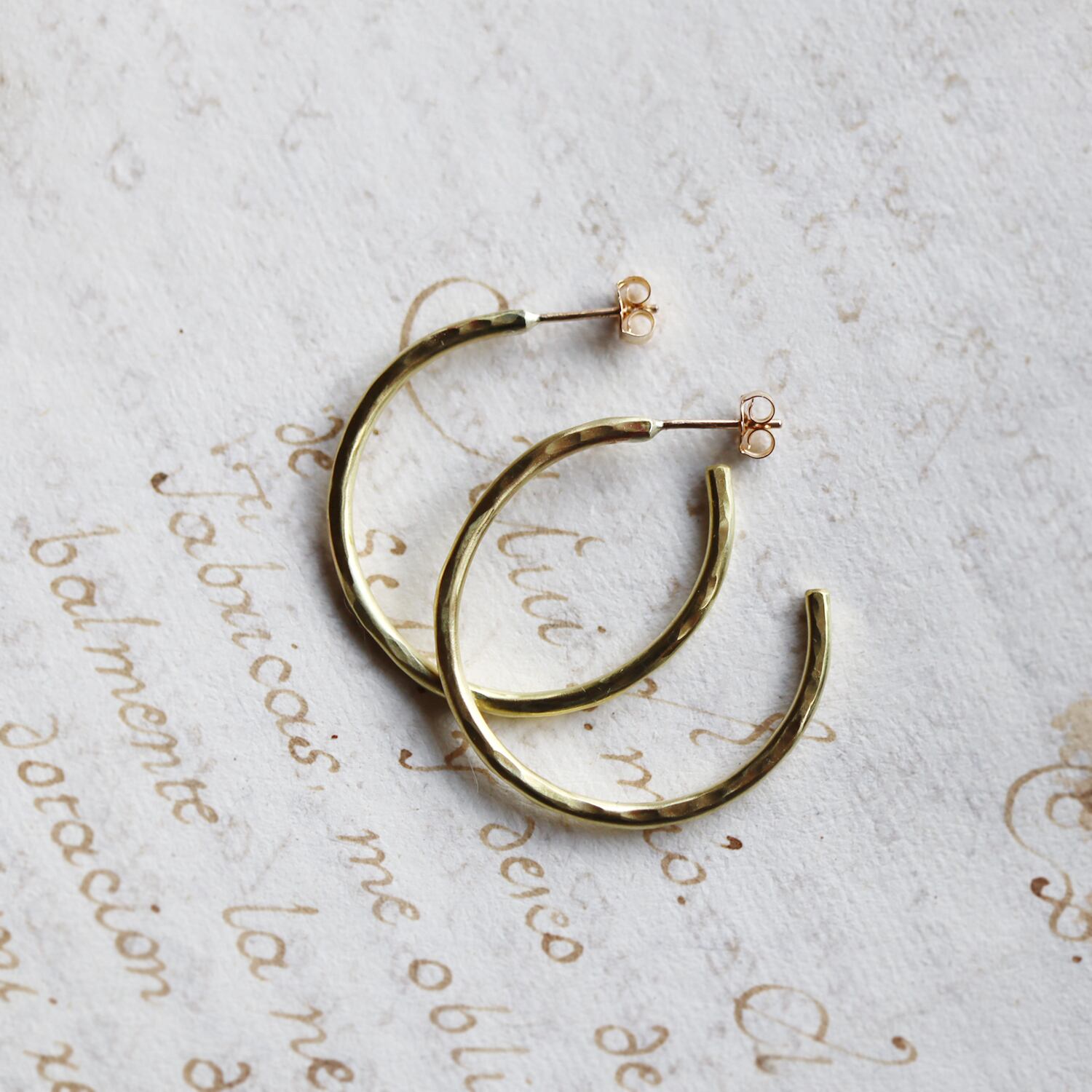 真鍮のあたたかい質感をいかした、シンプルなフープピアス。
