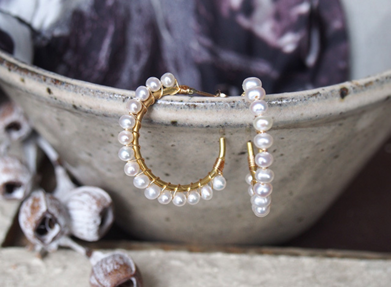 パールの真鍮フープピアス