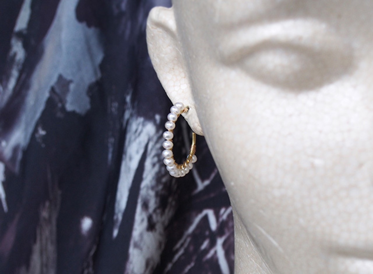 自然な丸みと上品な輝きの小さなパールが、ぽこぽこと連なったフープピアス。