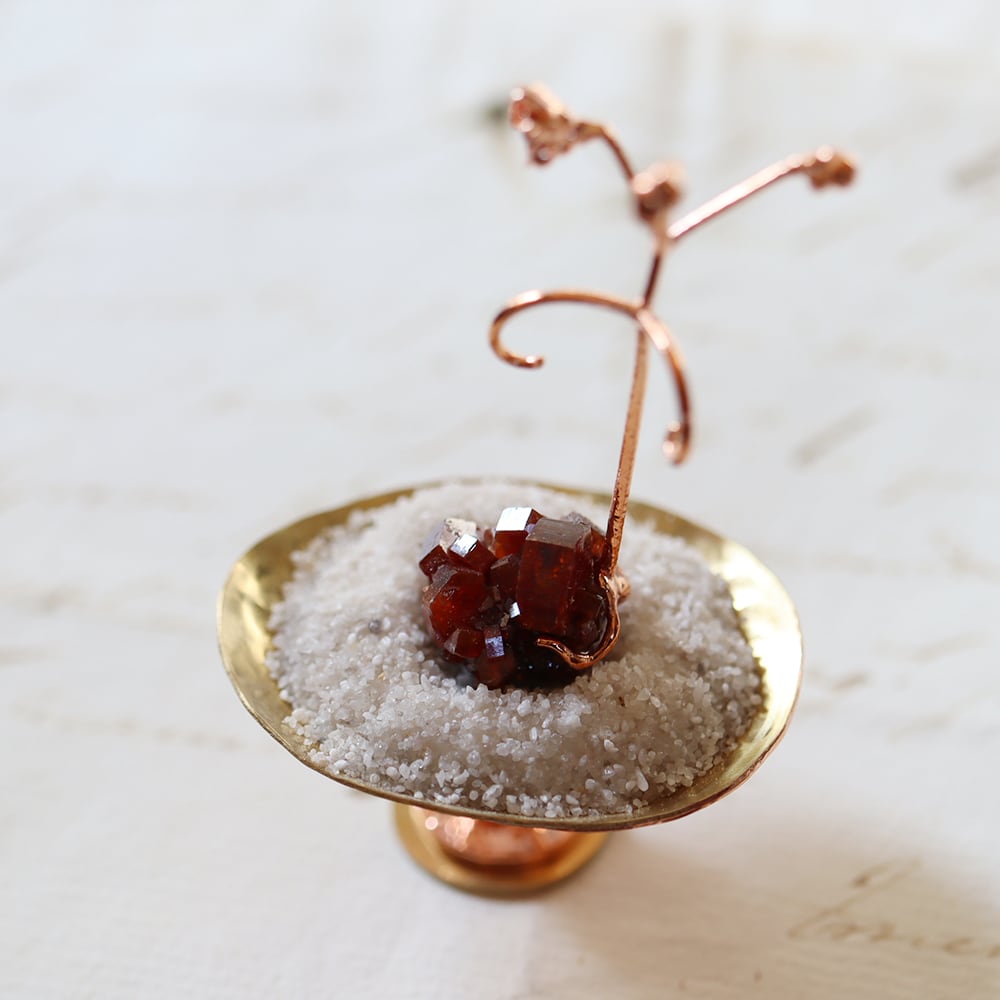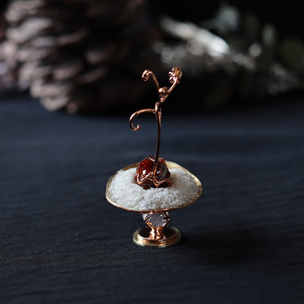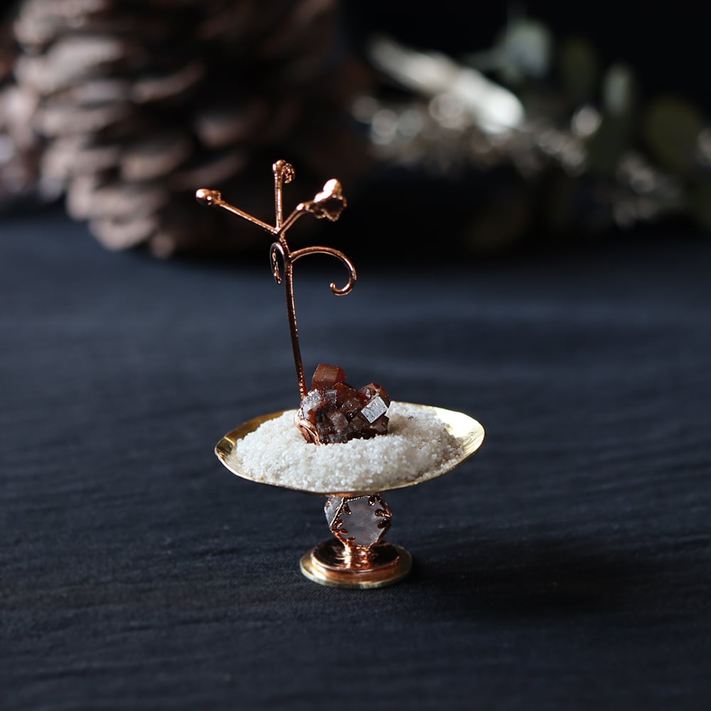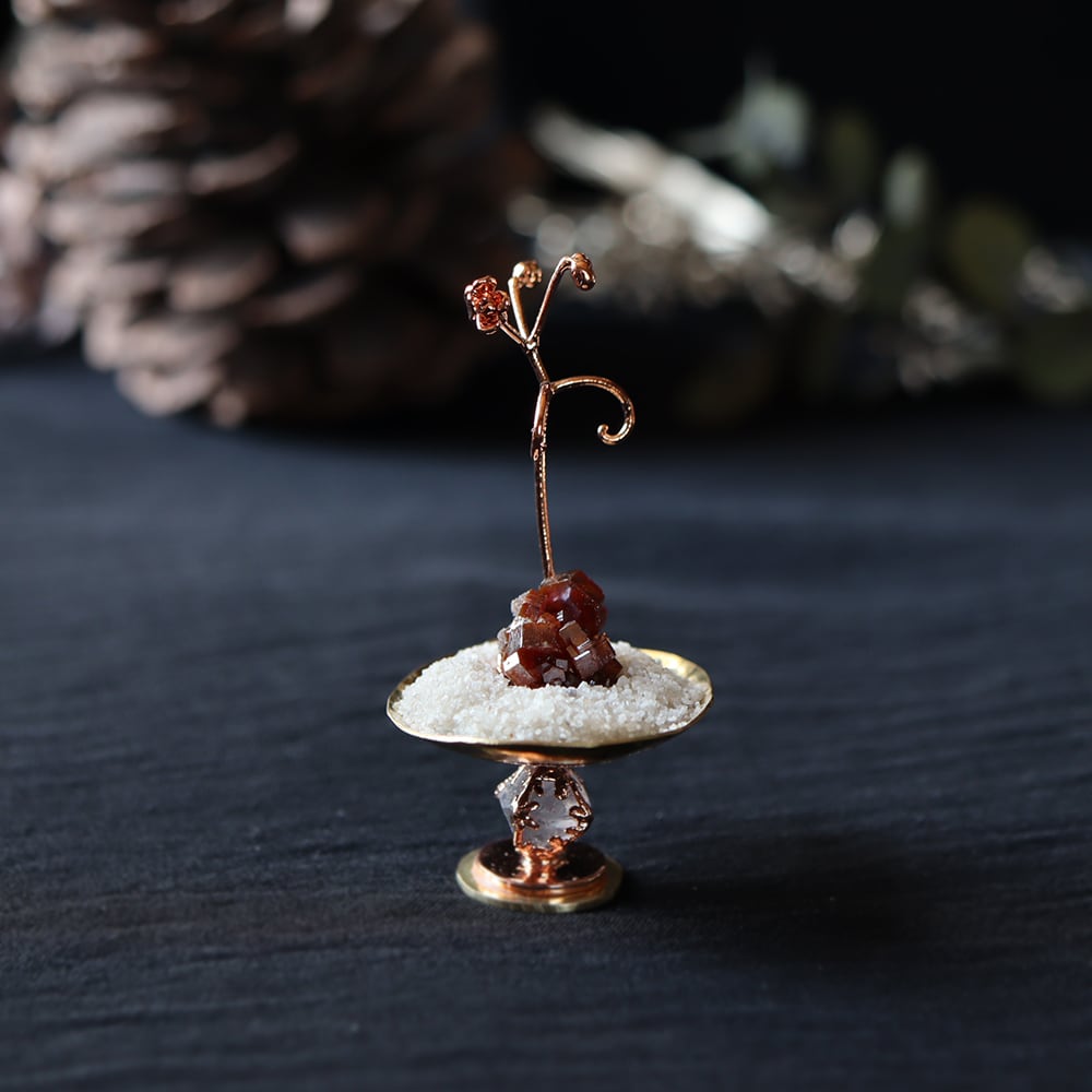 銅化した本物の植物と鉱物を使ったアートオブジェ。