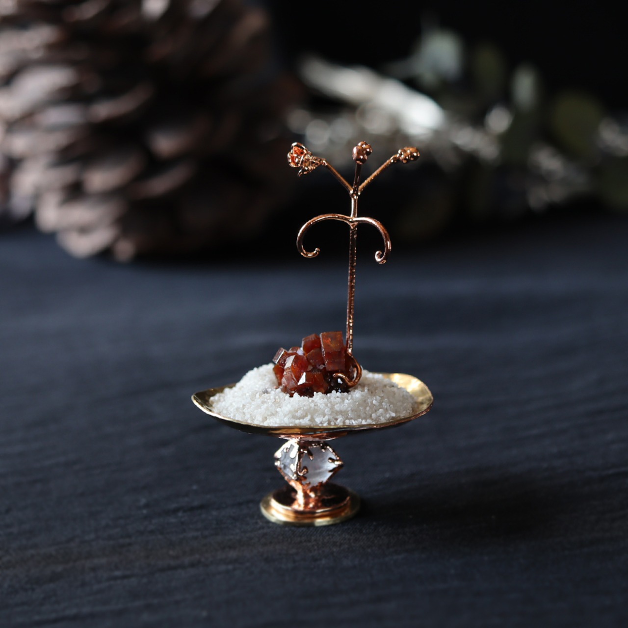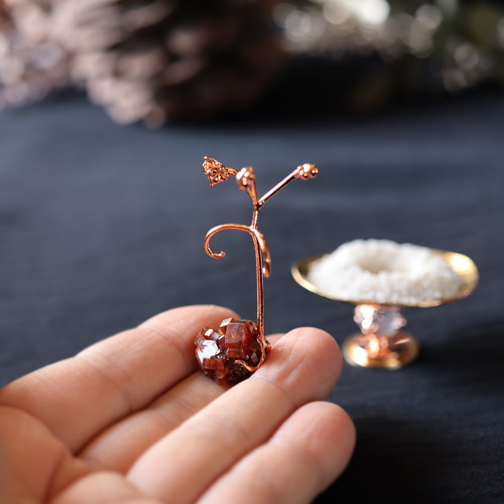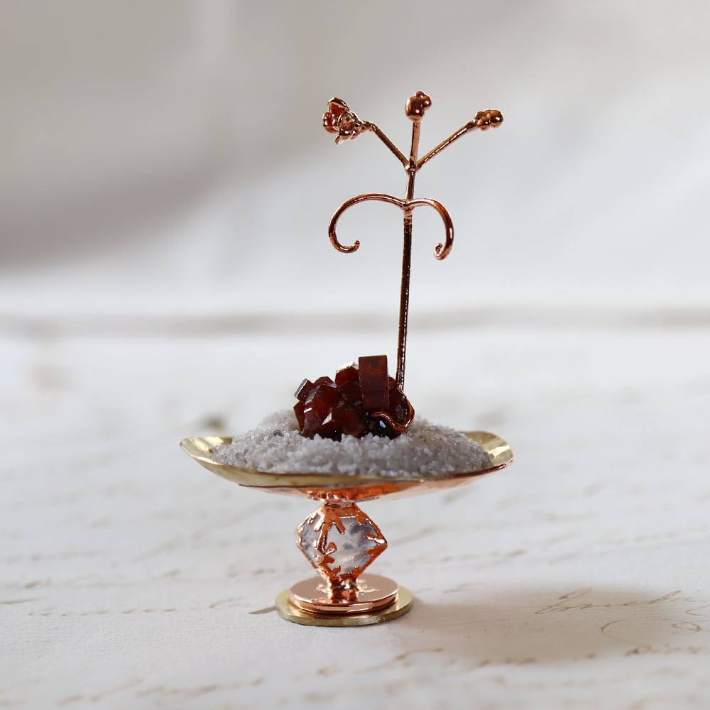 銅化した本物の植物と鉱物を使ったアートオブジェ。