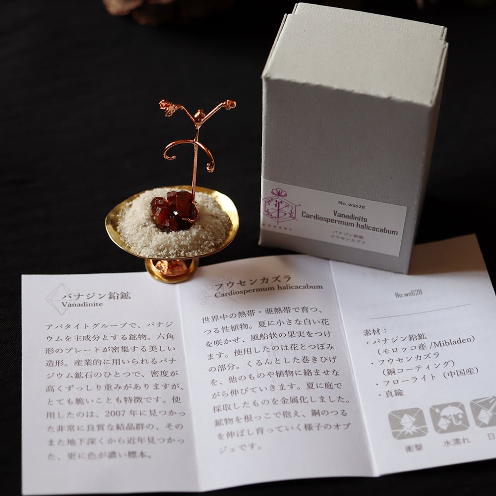 全ての作品にシリアルナンバーが付いており、オリジナルの箱と鉱物植物に関する説明書を同封します。