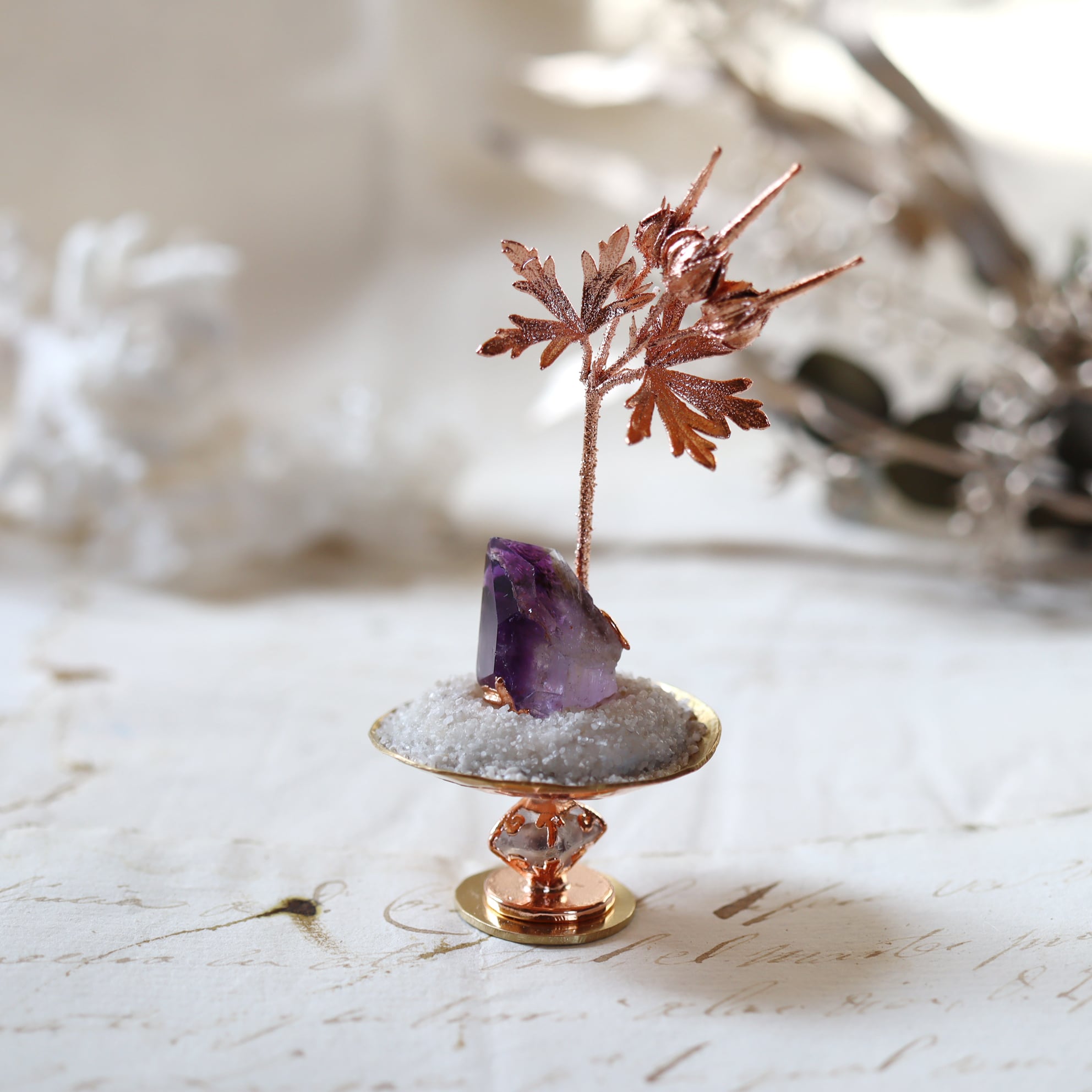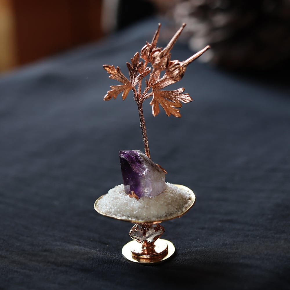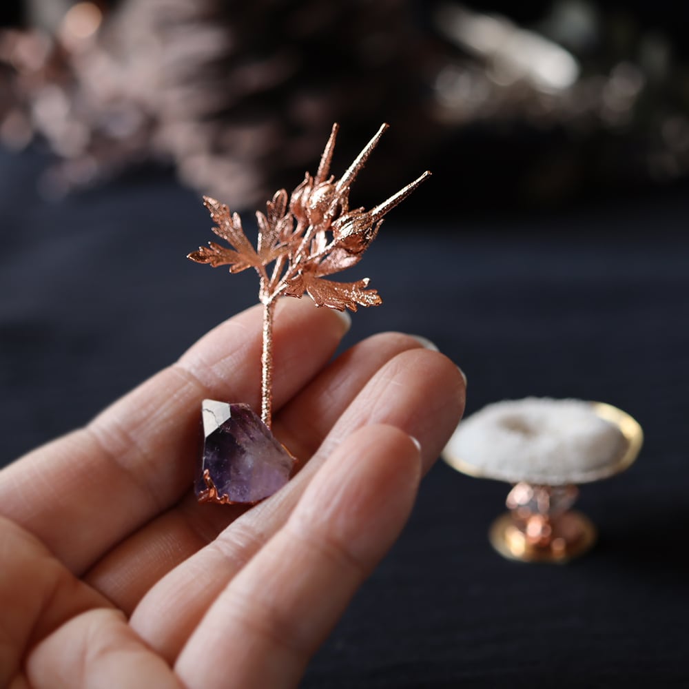 銅化した本物の植物と鉱物を使ったアートオブジェ。