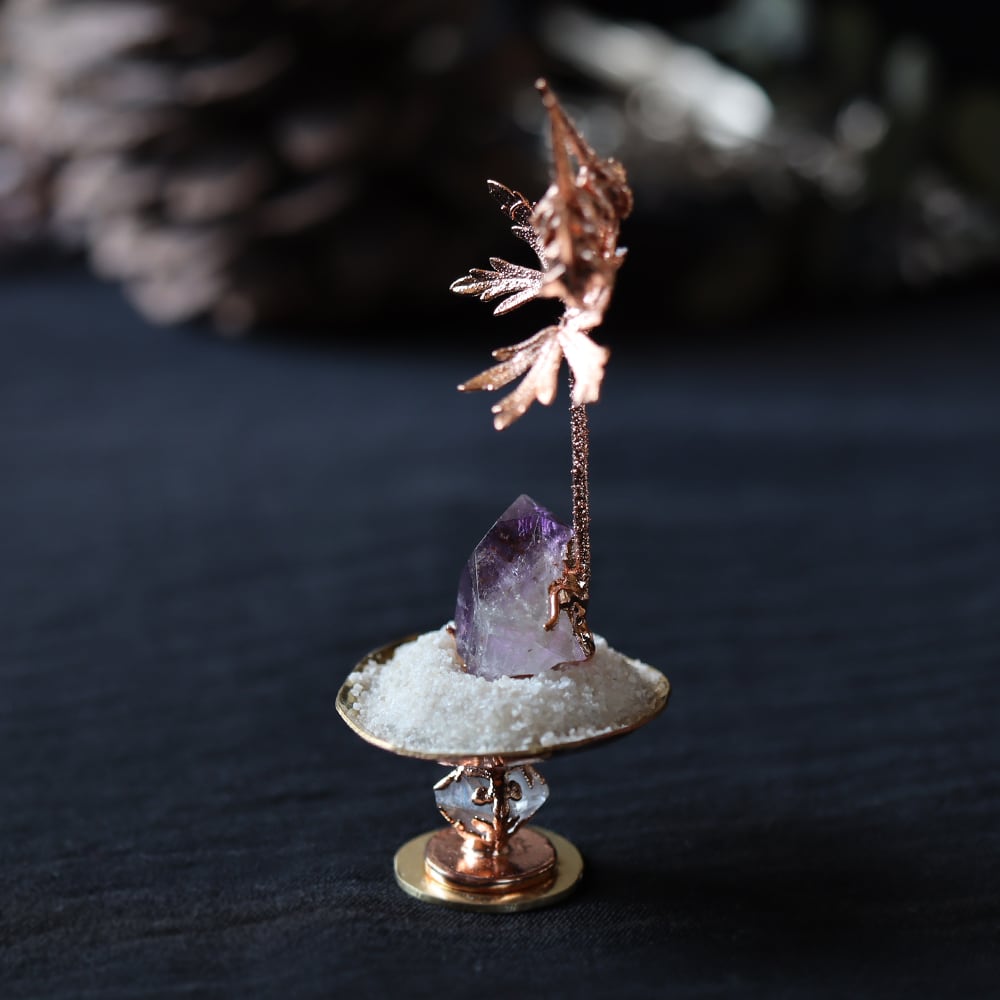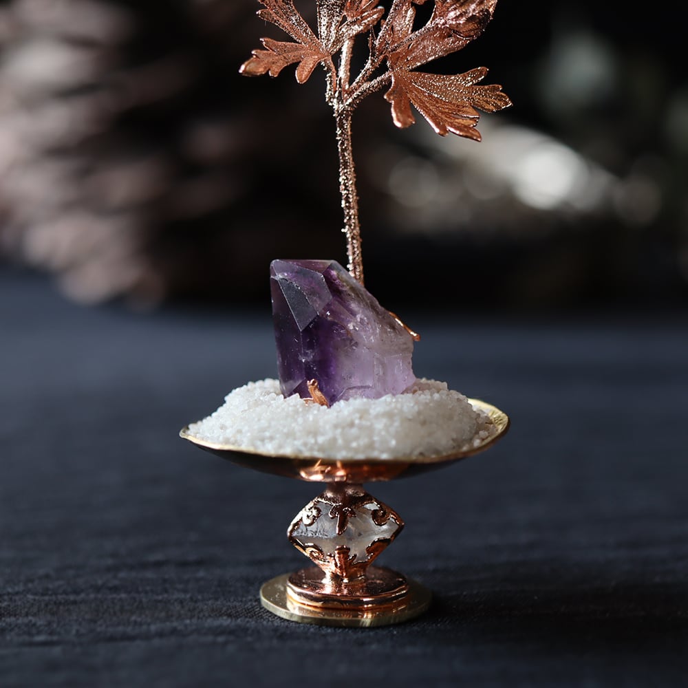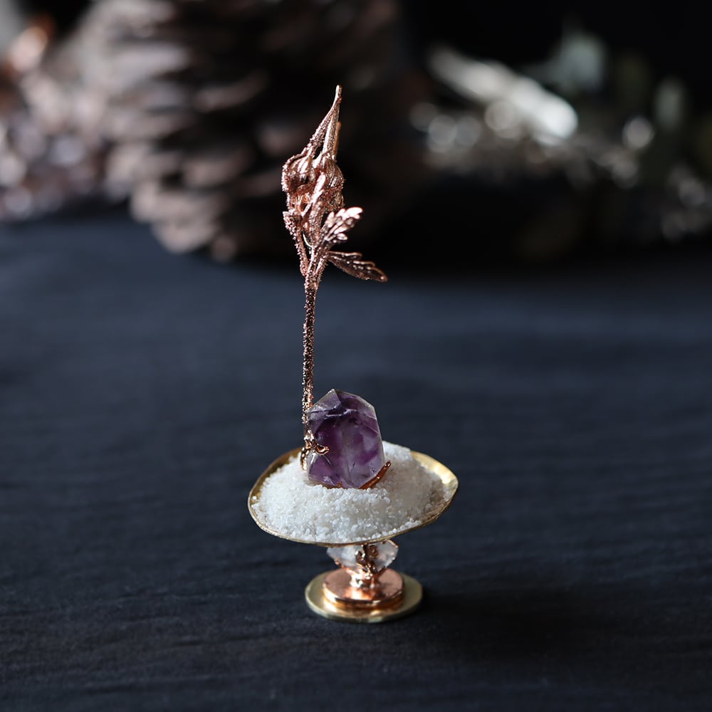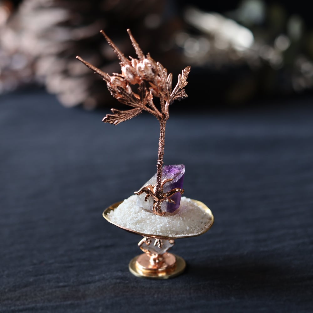 銅化した本物の植物と鉱物を使ったアートオブジェ。