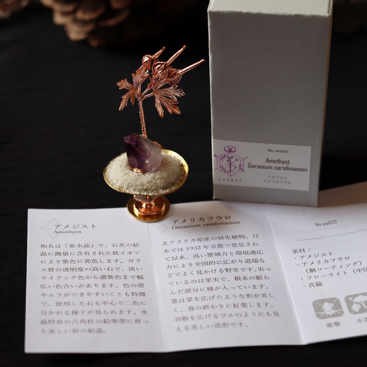全ての作品にシリアルナンバーが付いており、オリジナルの箱と鉱物植物に関する説明書を同封します。