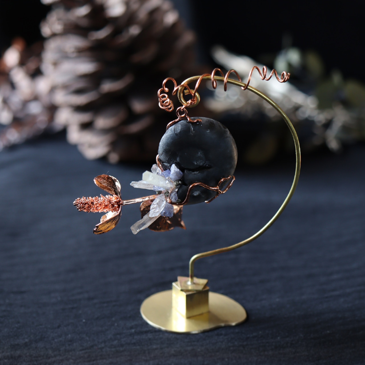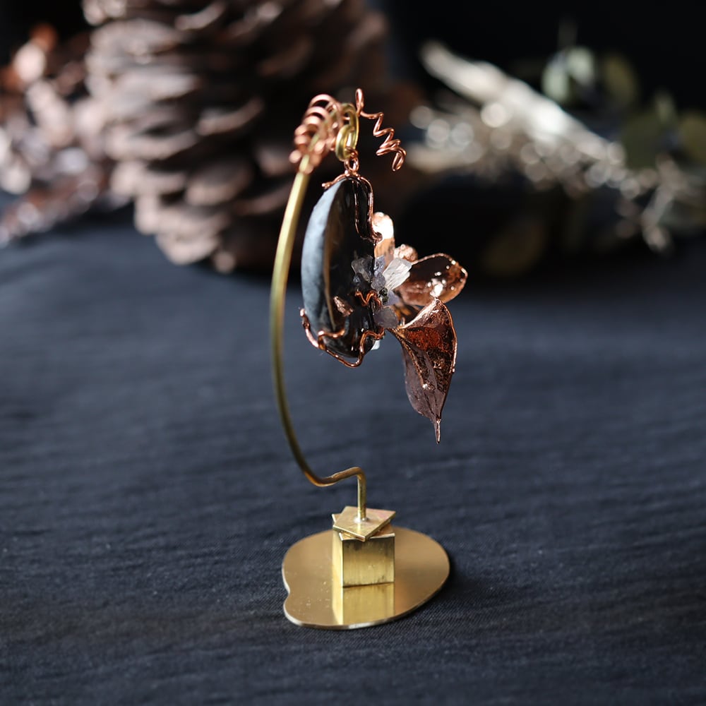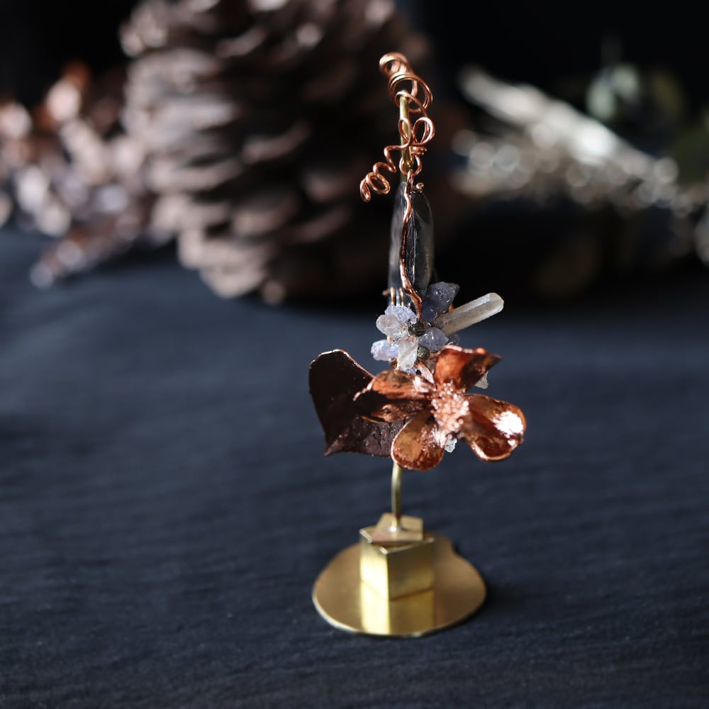 銅化した本物の植物と鉱物を使ったアートオブジェ。