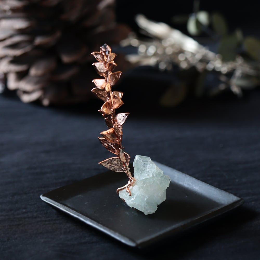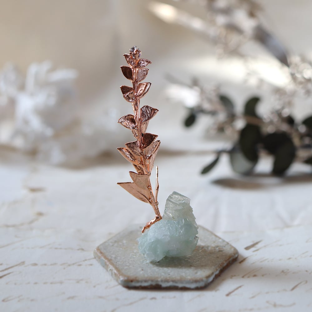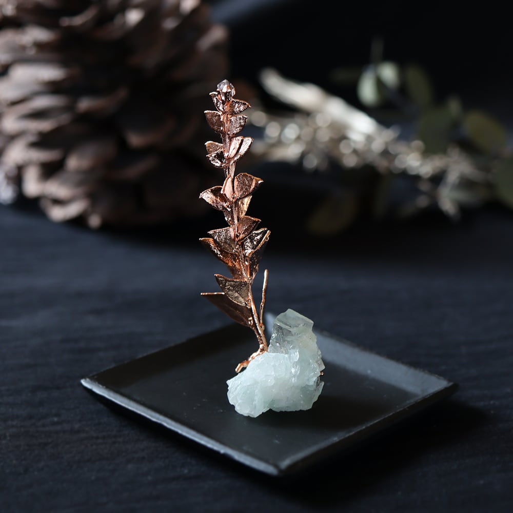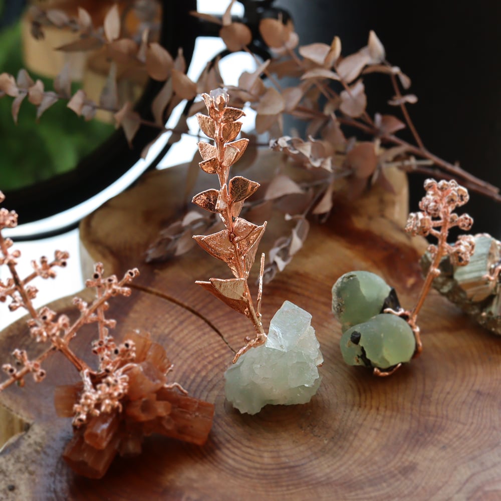 銅化した本物の植物と鉱物を使ったアートオブジェ。