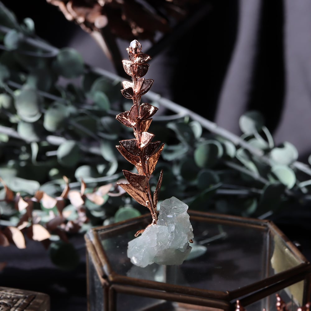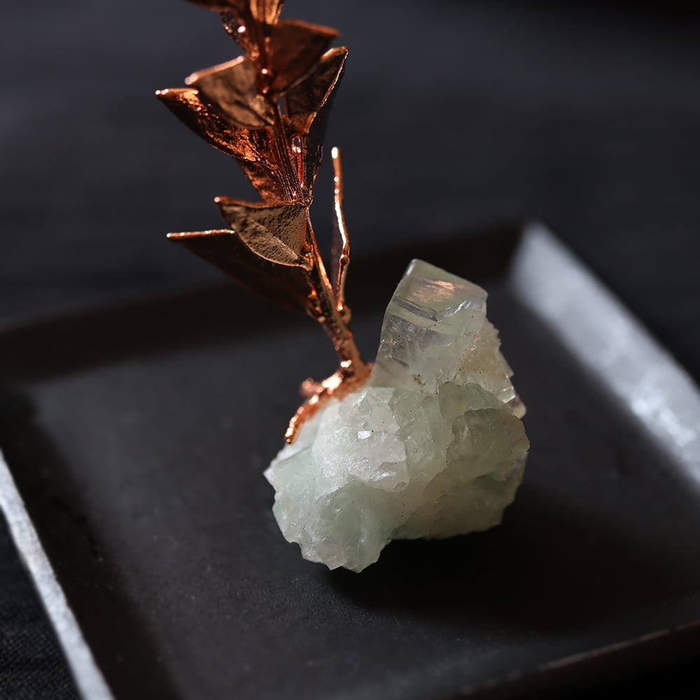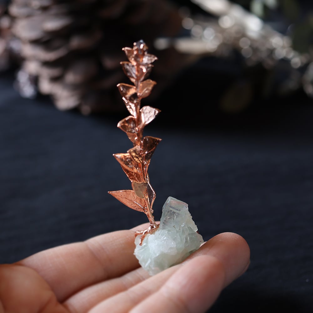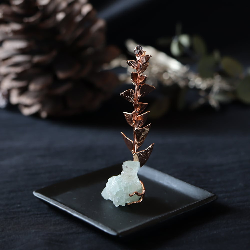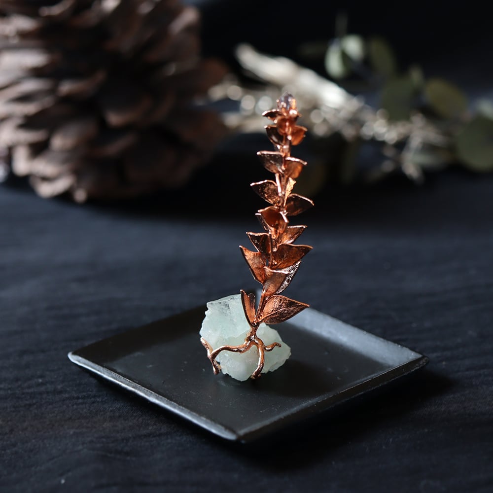 銅化した本物の植物と鉱物を使ったアートオブジェ。