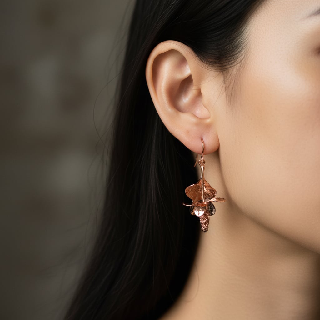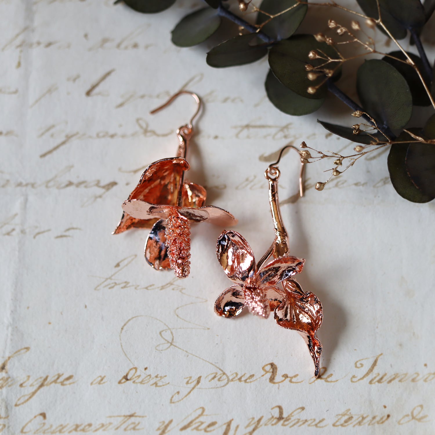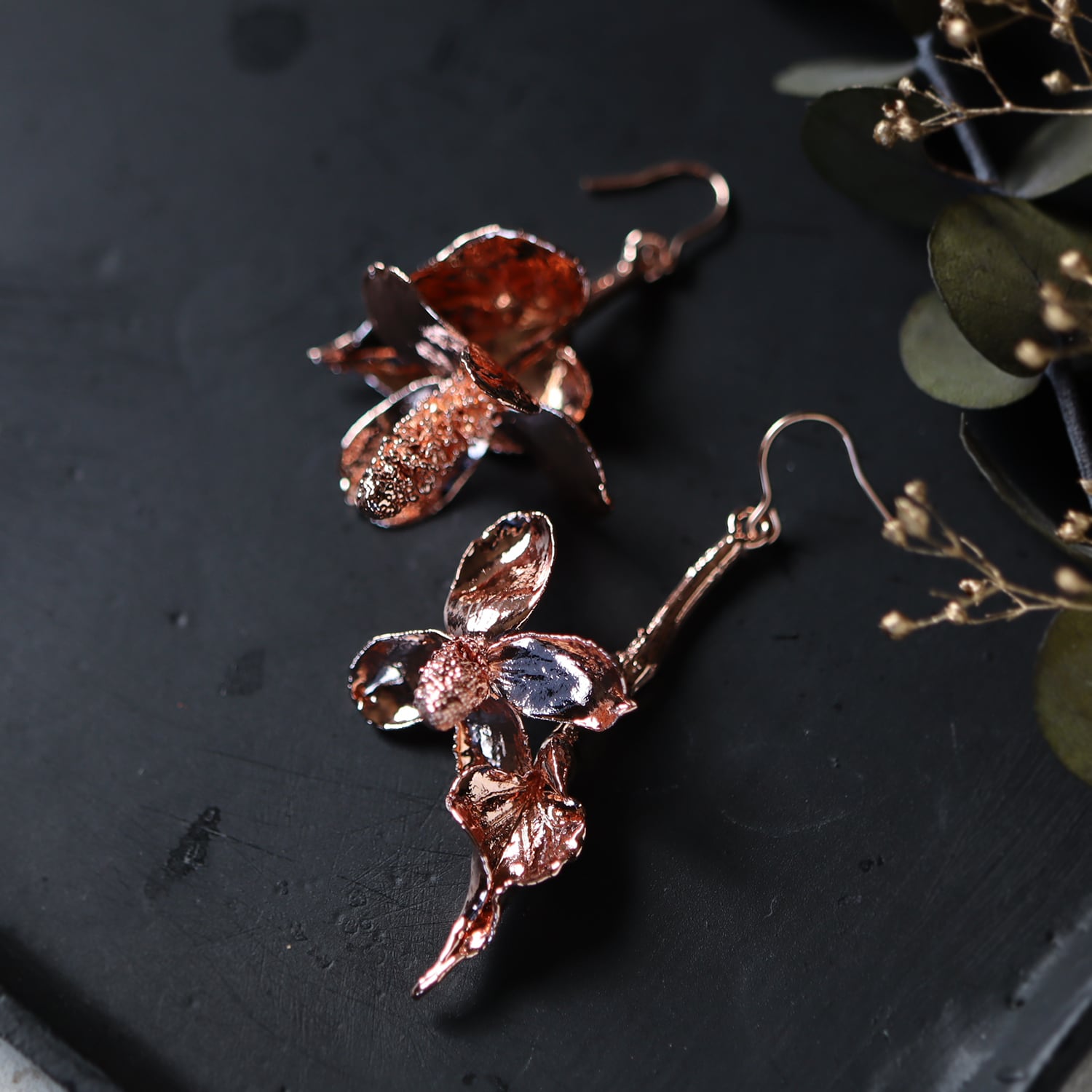 素材:ドクダミ(銅メッキ)・K14ローズゴールドフィルド