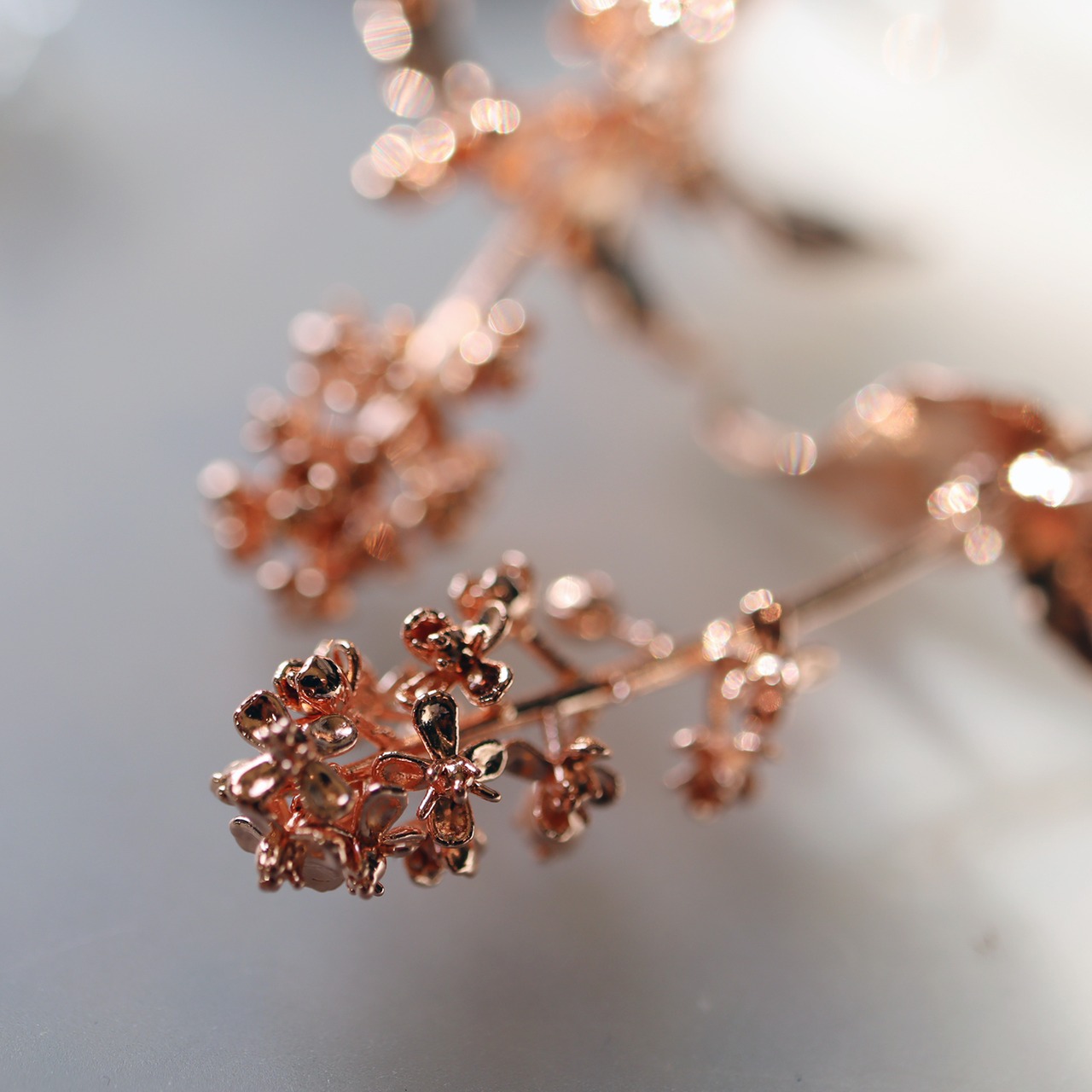 5mmにも満たない小さな花が密集している様子や、うねる葉の葉脈までそのまま封じ込め、植物標本のような静かな存在感と、金属ならではの強度を両立させました。