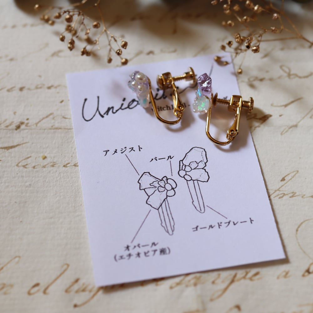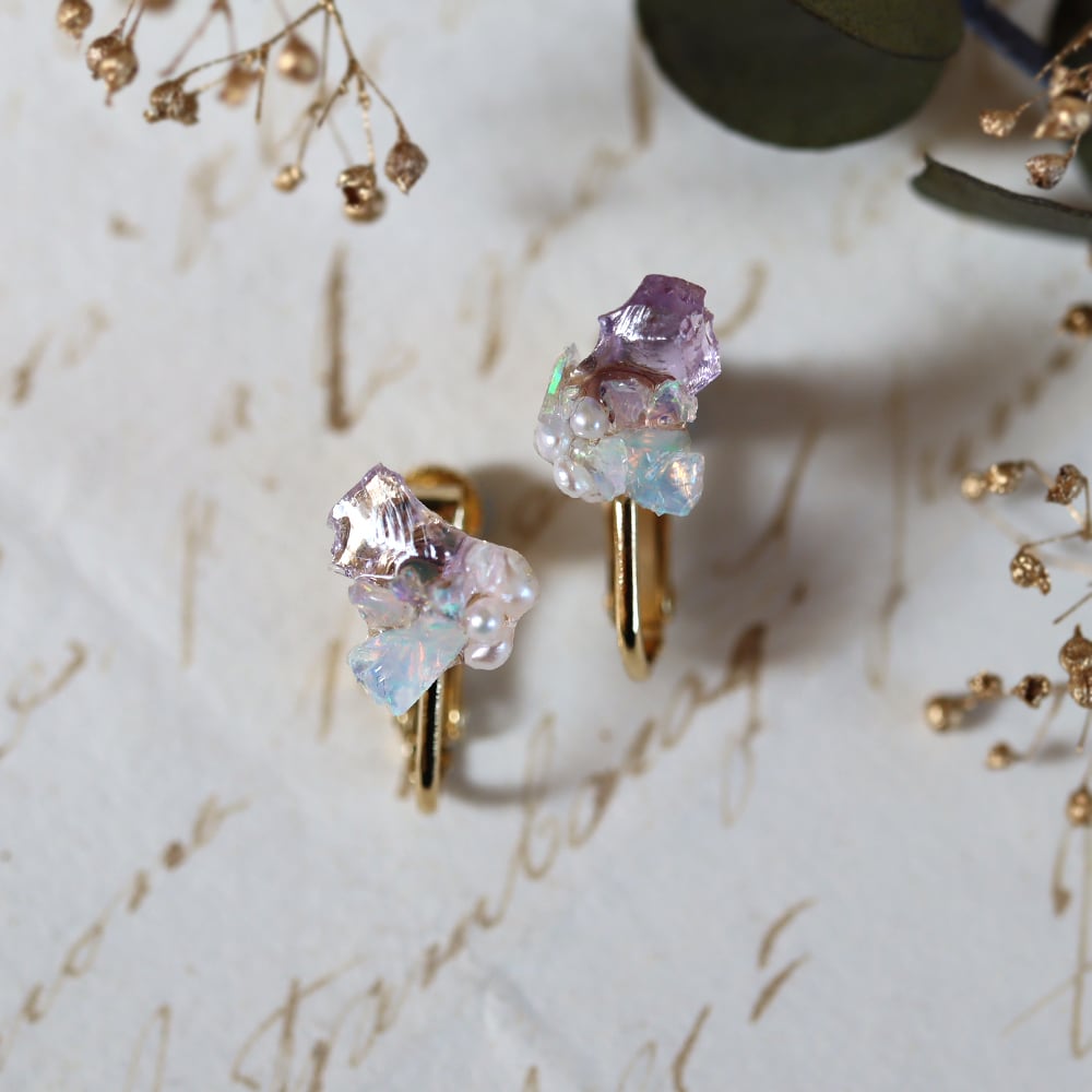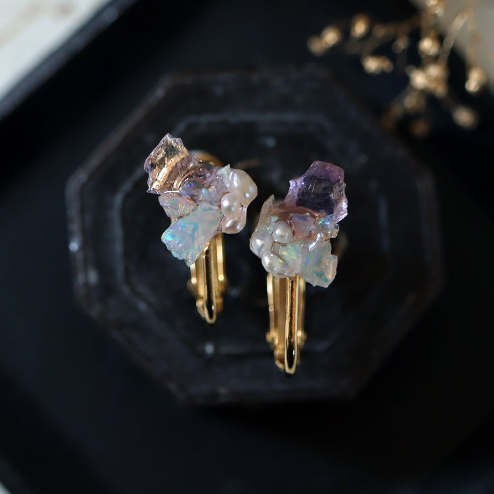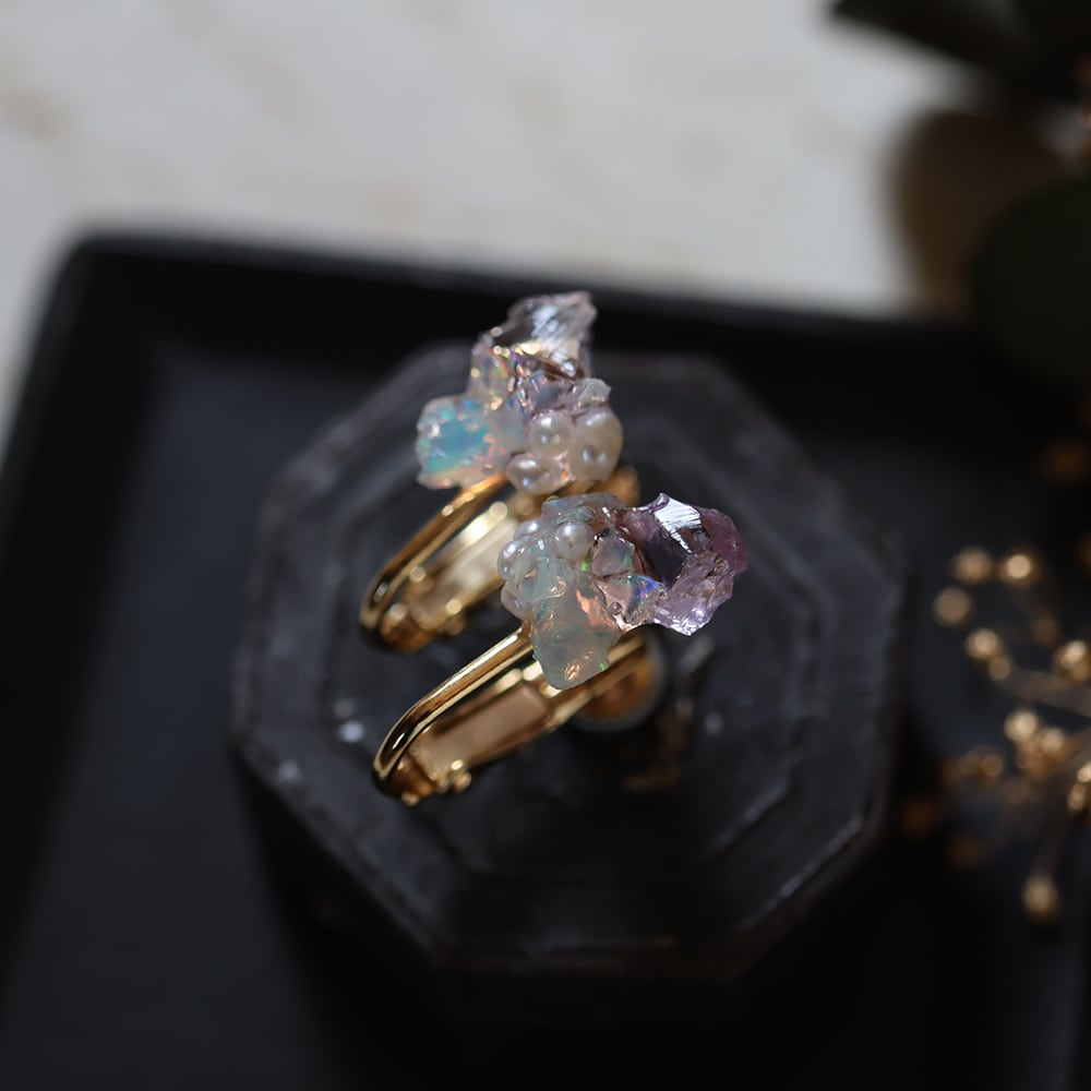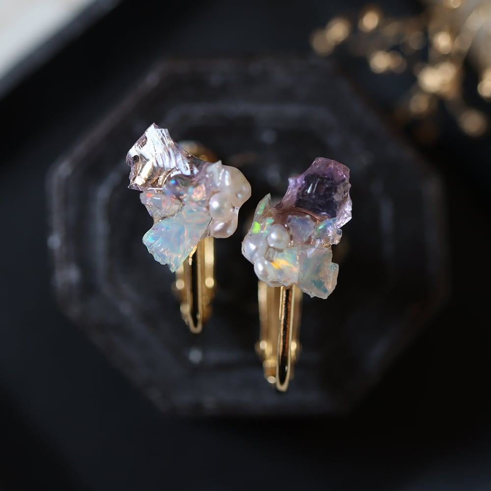 素材:アメジスト・オパール(エチオピア産)・パール・ゴールドプレート(イヤリング金具)
