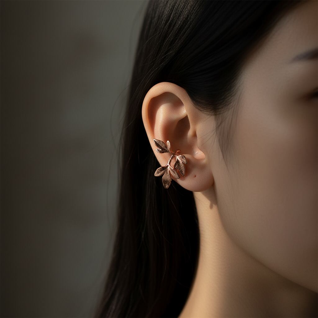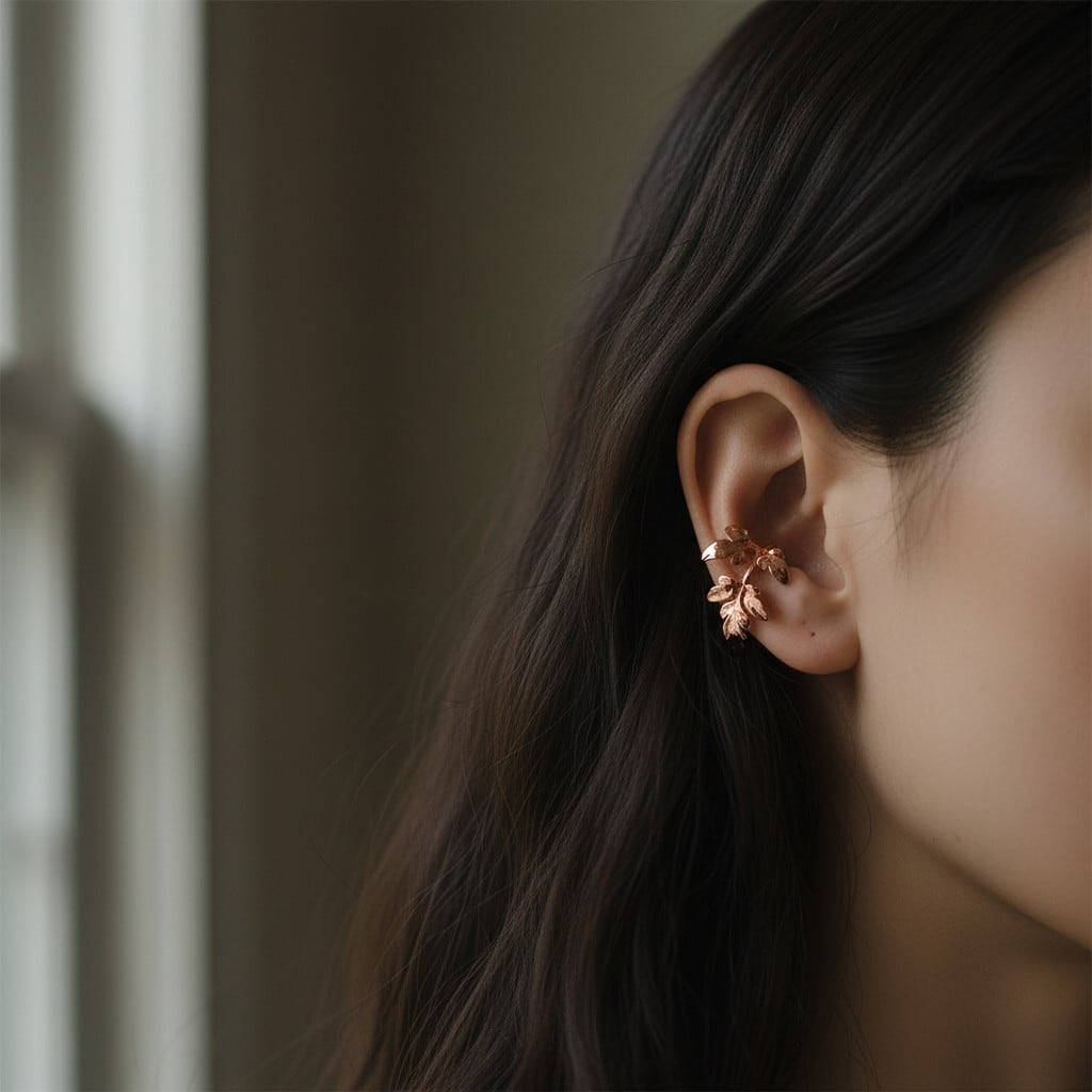 イヤーカフは耳たぶの凹凸に引っ掛けるようにして装着するため、痛くなりにくく着け心地の良いデザイン。ピアスホールの有無を問わずお楽しみいただけます。