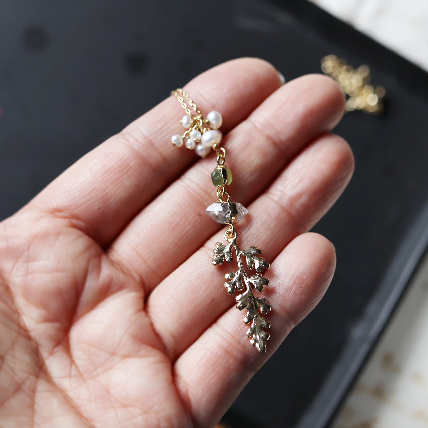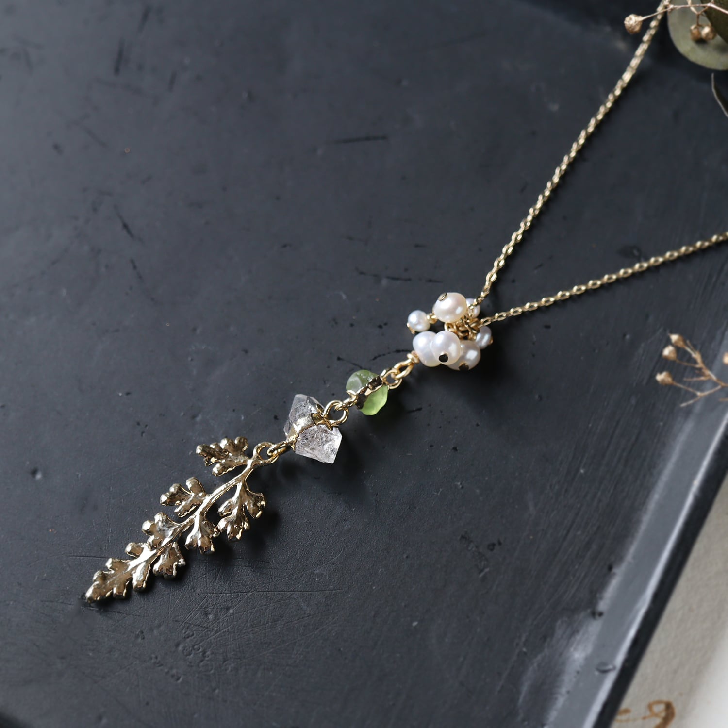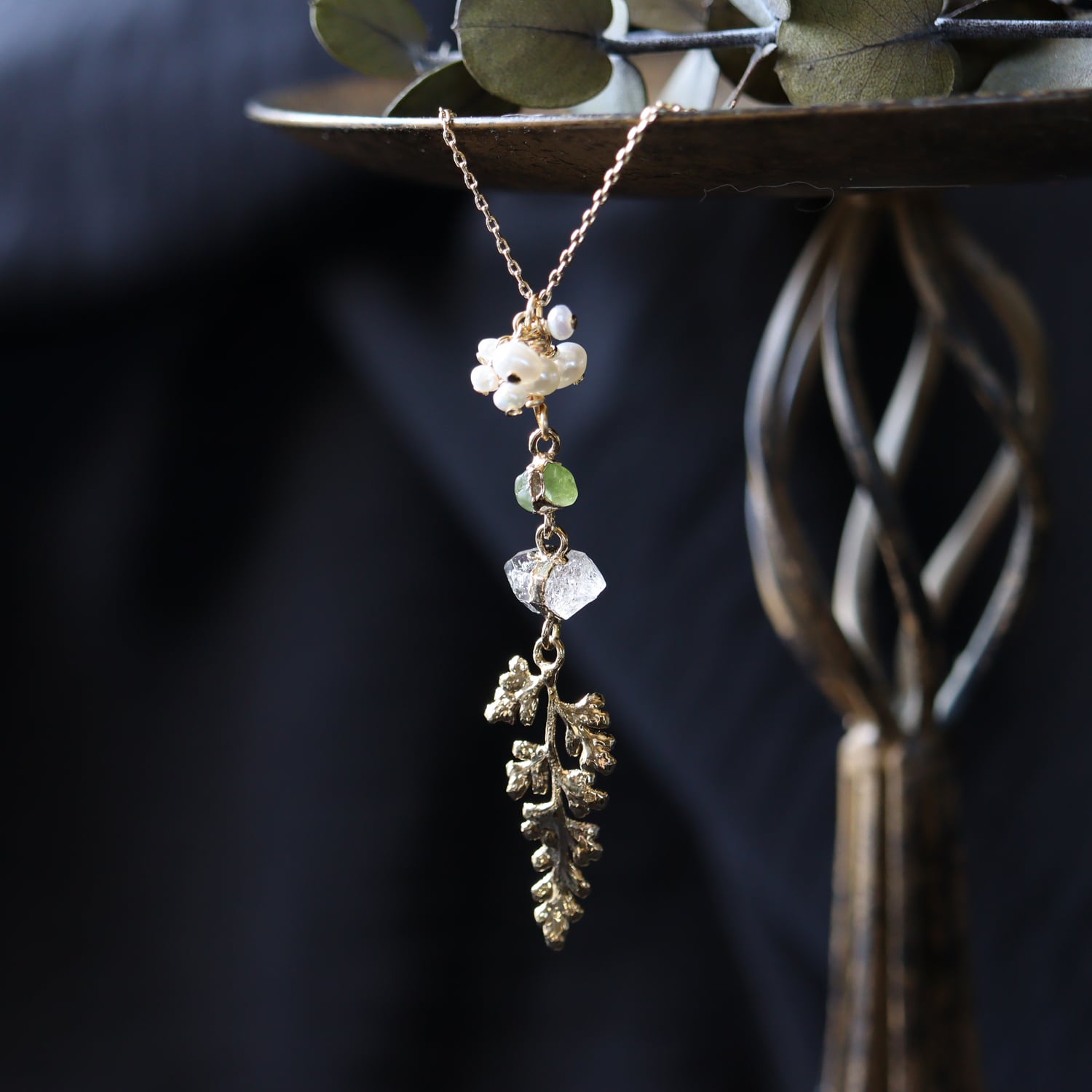 原石ダイヤモンドクォーツとカニクサの葉ネックレス