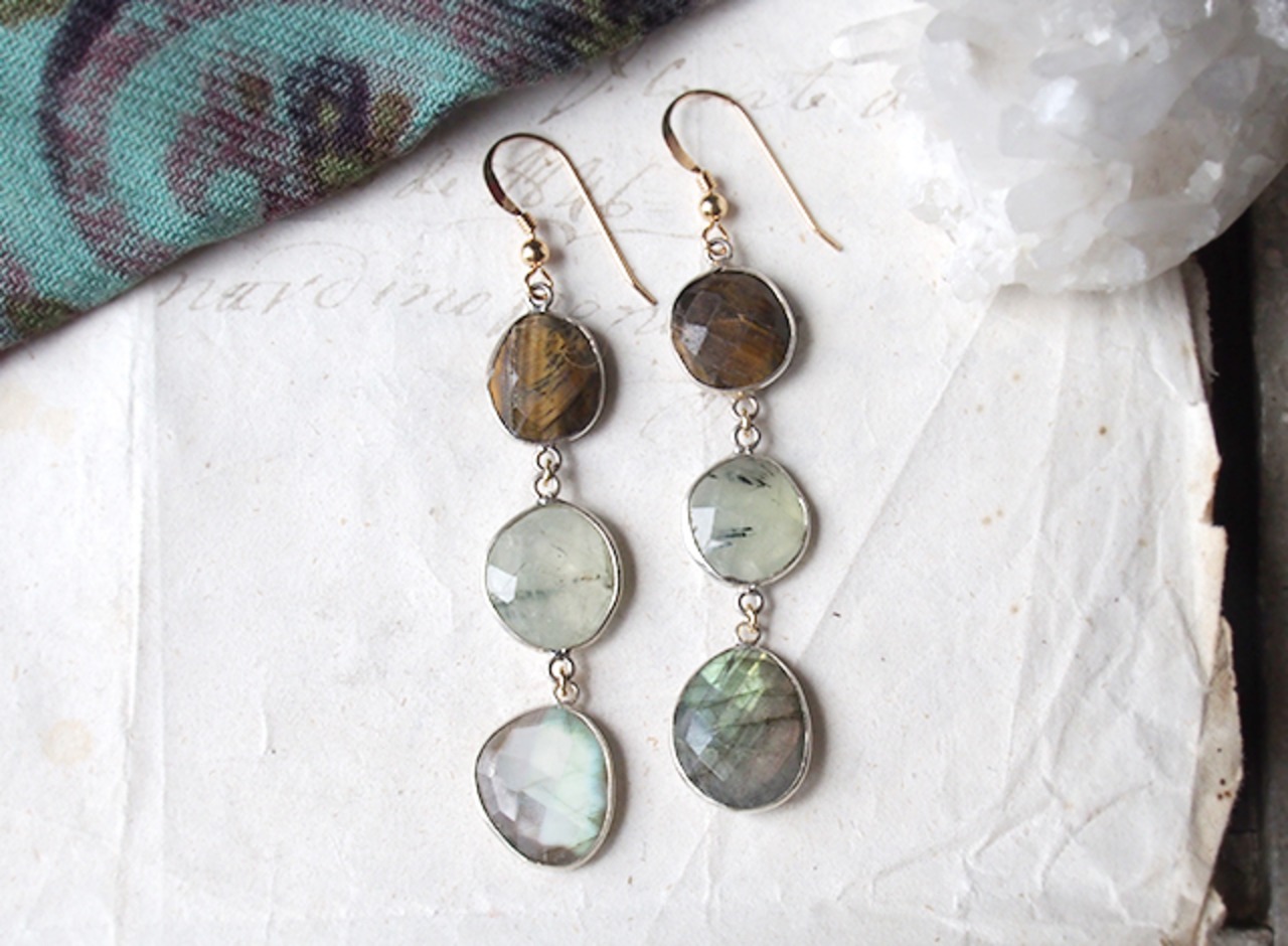 タイガーアイ・プレーナイト・ラブラドライトのピアス