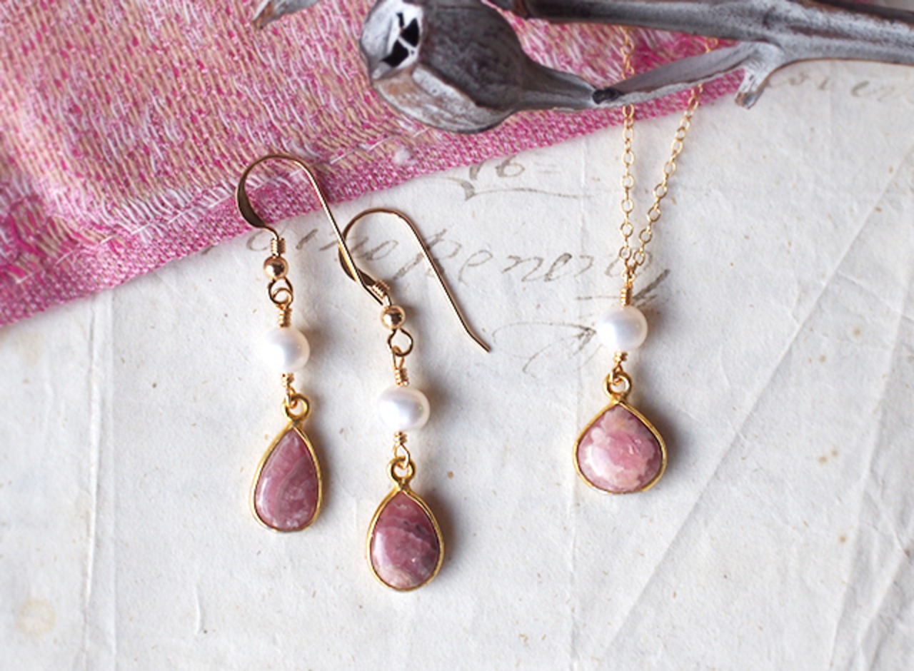 バラ色のマーブル模様が美しいインカローズと、自然な丸みと上品な輝きのパール。