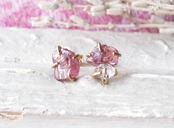 原石のマラヤガーネットとダイヤモンドクォーツのピアス