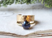 真鍮のあたたかいゴールド色が黒を引き立てる、シックなリングです。