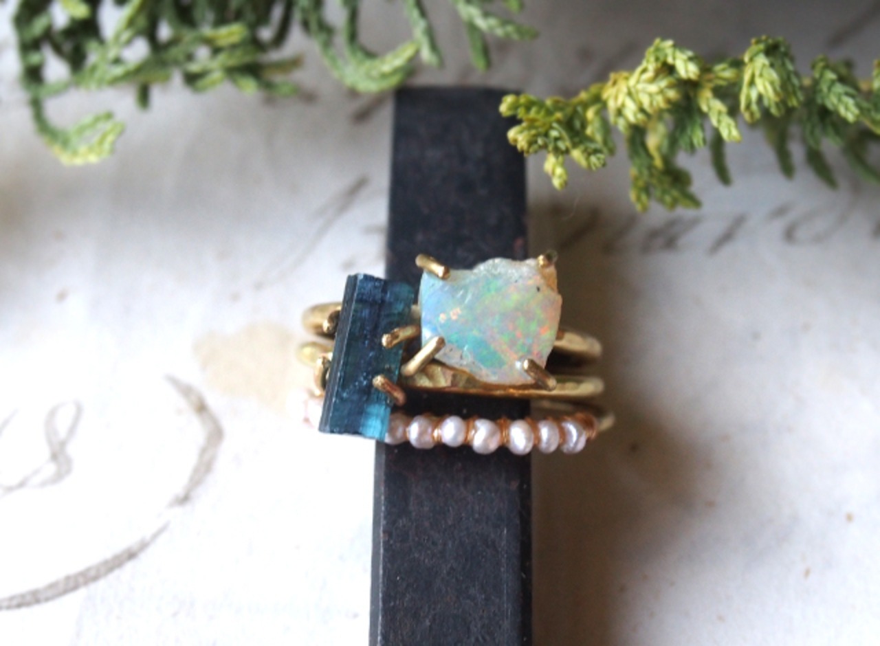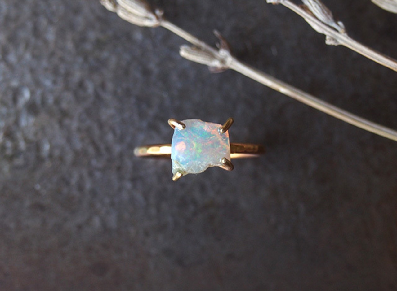 ミルキーな石の中に、虹色の光がきらきらと輝くオパール。