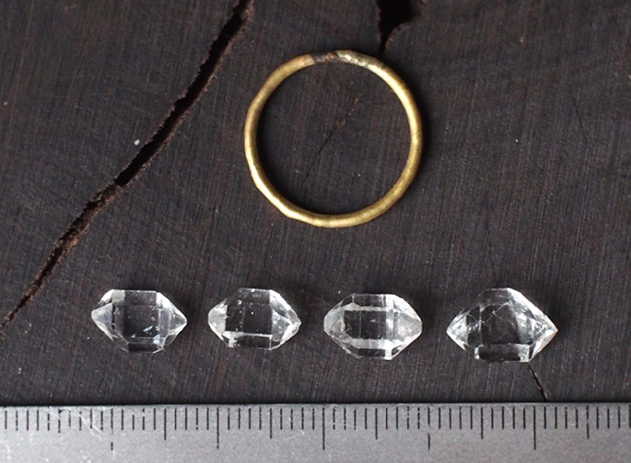 原石のダイヤモンドクォーツのリング(右から2番目の石)11号