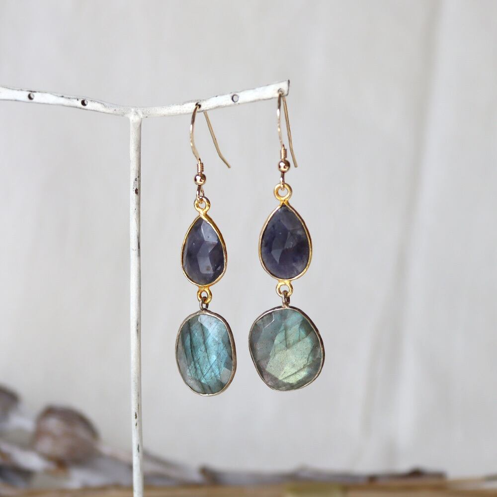 素材:アイオライト・ラブラドライト・シルバー(石枠/ゴールドプレート)・K14ゴールドフィルド(ピアス金具)