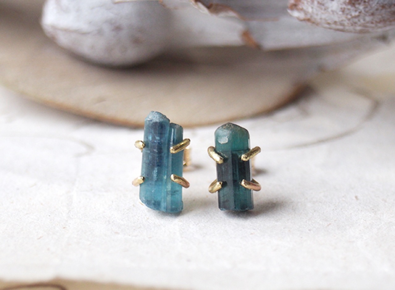 原石のグリーントルマリンのピアス(赤〇の石) ¥4000