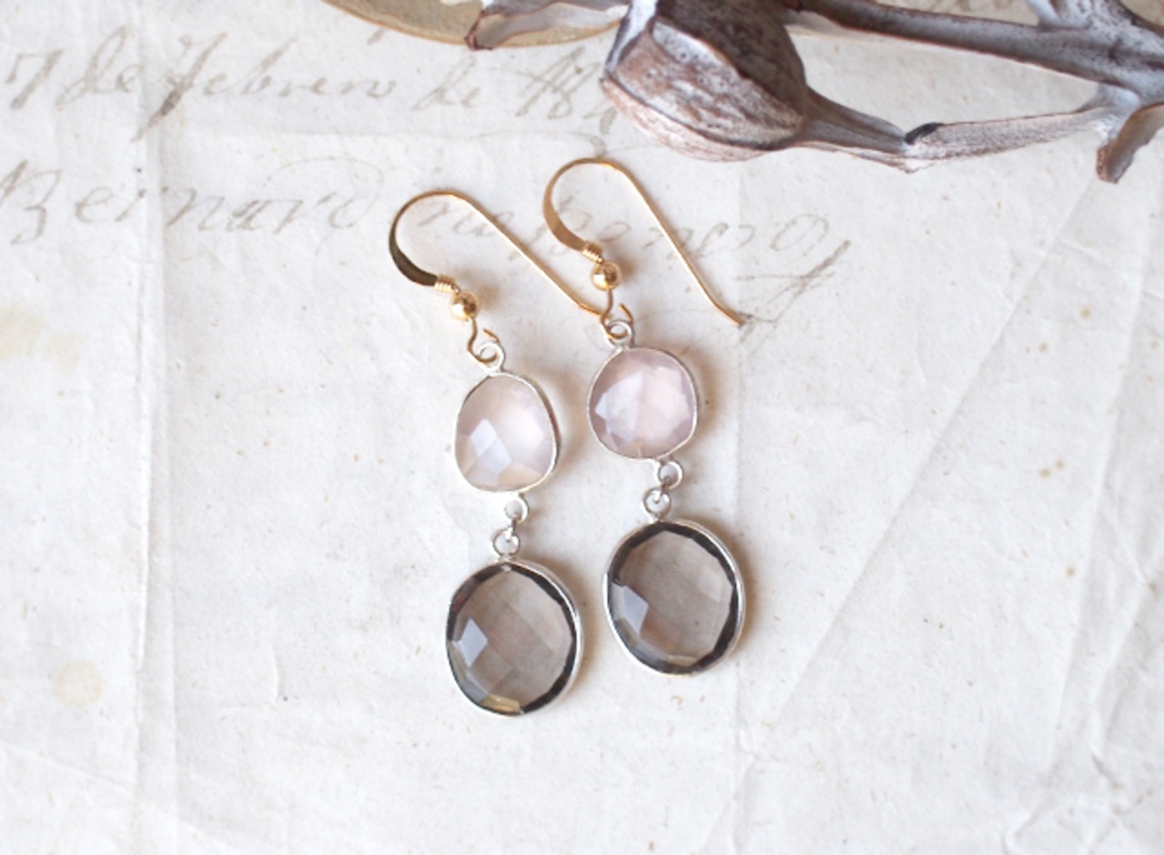 ローズクォーツ+スモーキークォーツのピアス(右のペア) ¥3600