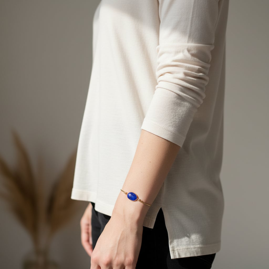 ラテン語のラピス「石」、群青「ラズリ」から名付けられた石で、鉱物として利用された最古のものです。深く美しい青色のものや、金色の斑点が入るものは特に愛されてきました。