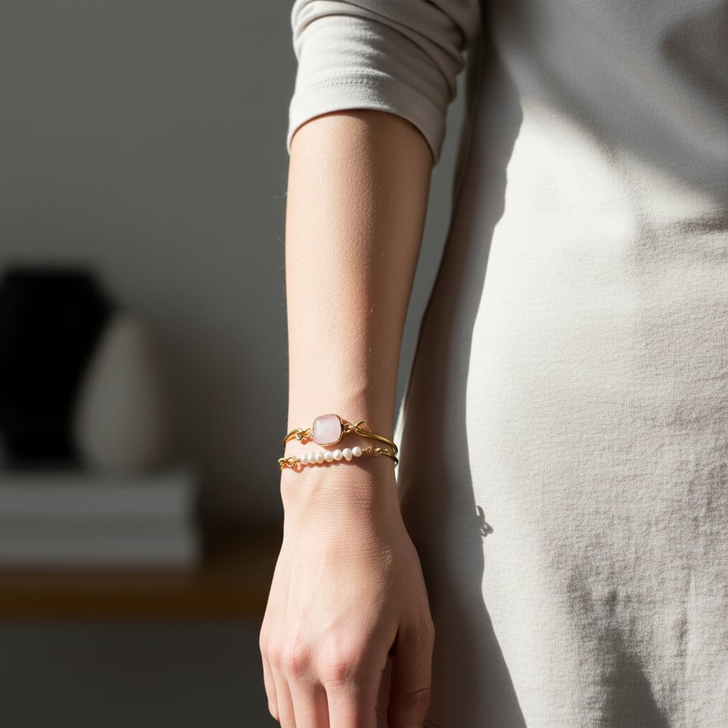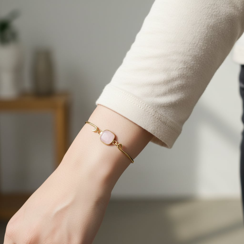 ローズクォーツの真鍮バングル