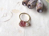 原石のストロベリークォーツとパールのリング(6.5号)
