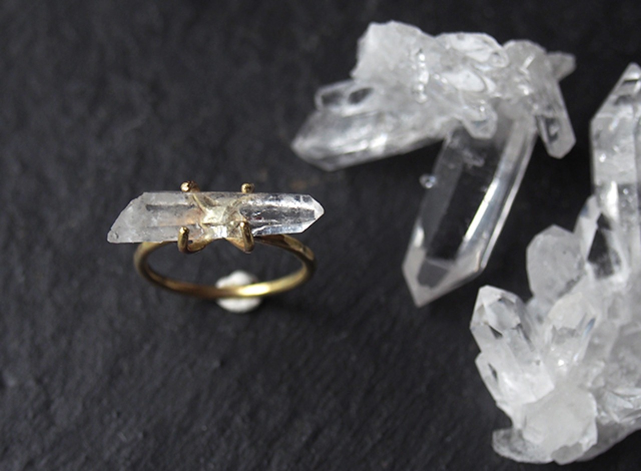 原石のクォーツのリング(11号) 原石のトルマリンのピアス ×3 原石のエメラルドのピアス シリーズ:rough
