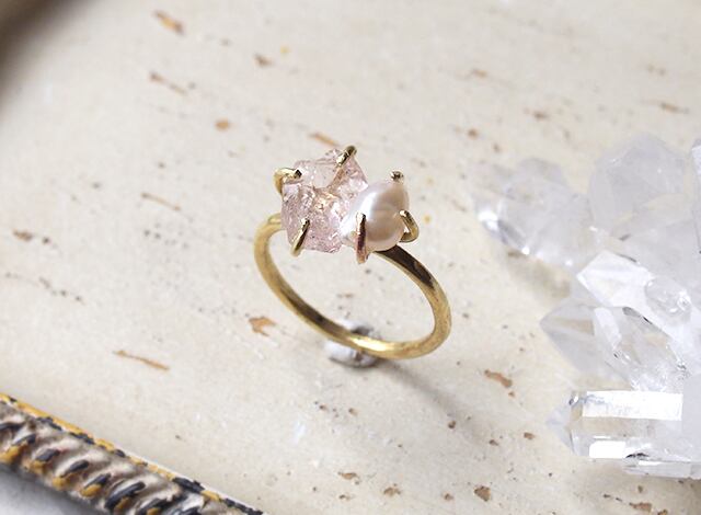 原石のモルガナイトとパールのリング(9号) ¥4200
