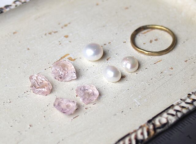 M様オーダー 原石のモルガナイトとパールのリング