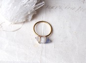横長の印象的な形をそのままに4本の爪で留めて、石が指の上に横たわるようなリングになりました。