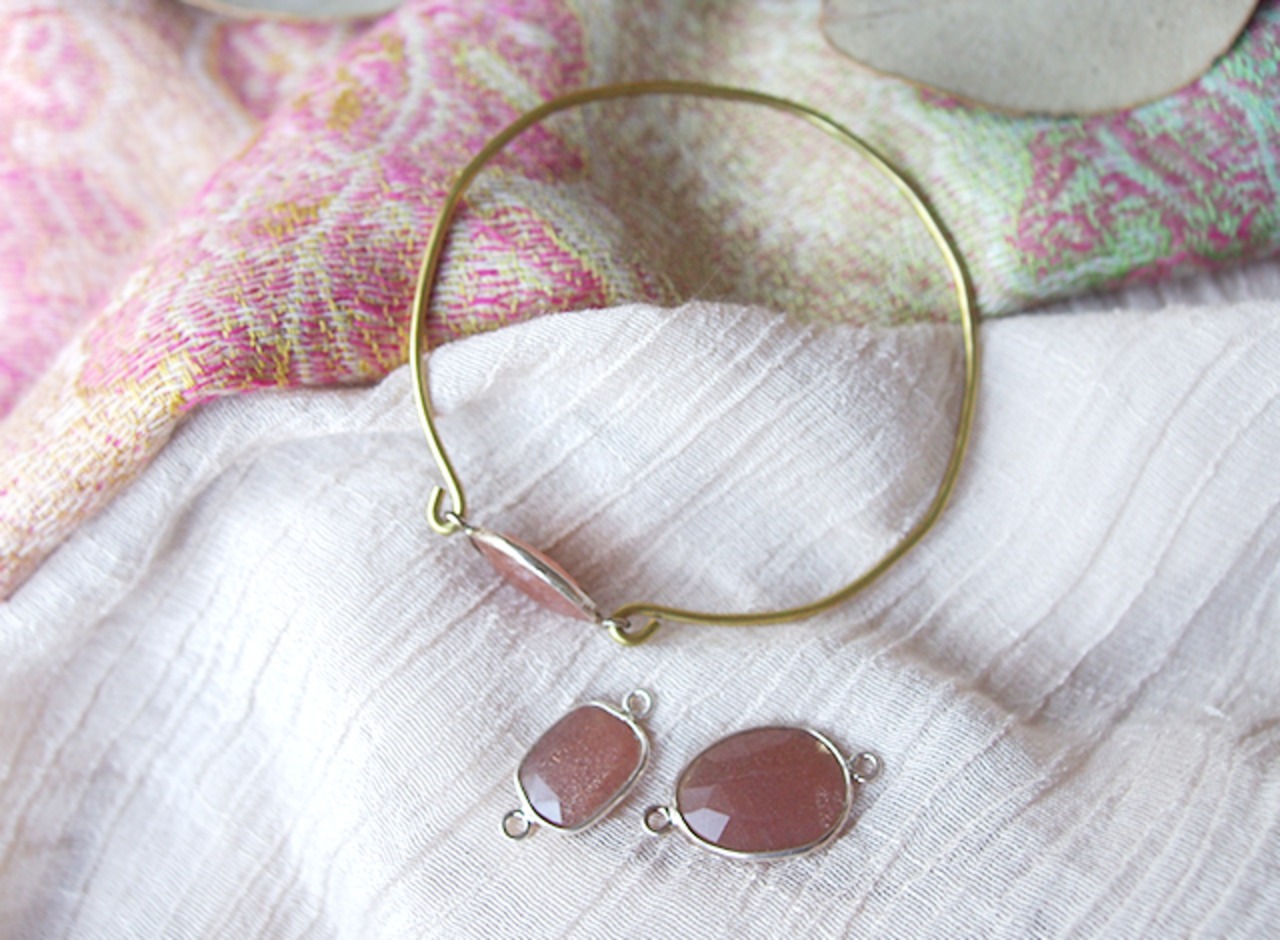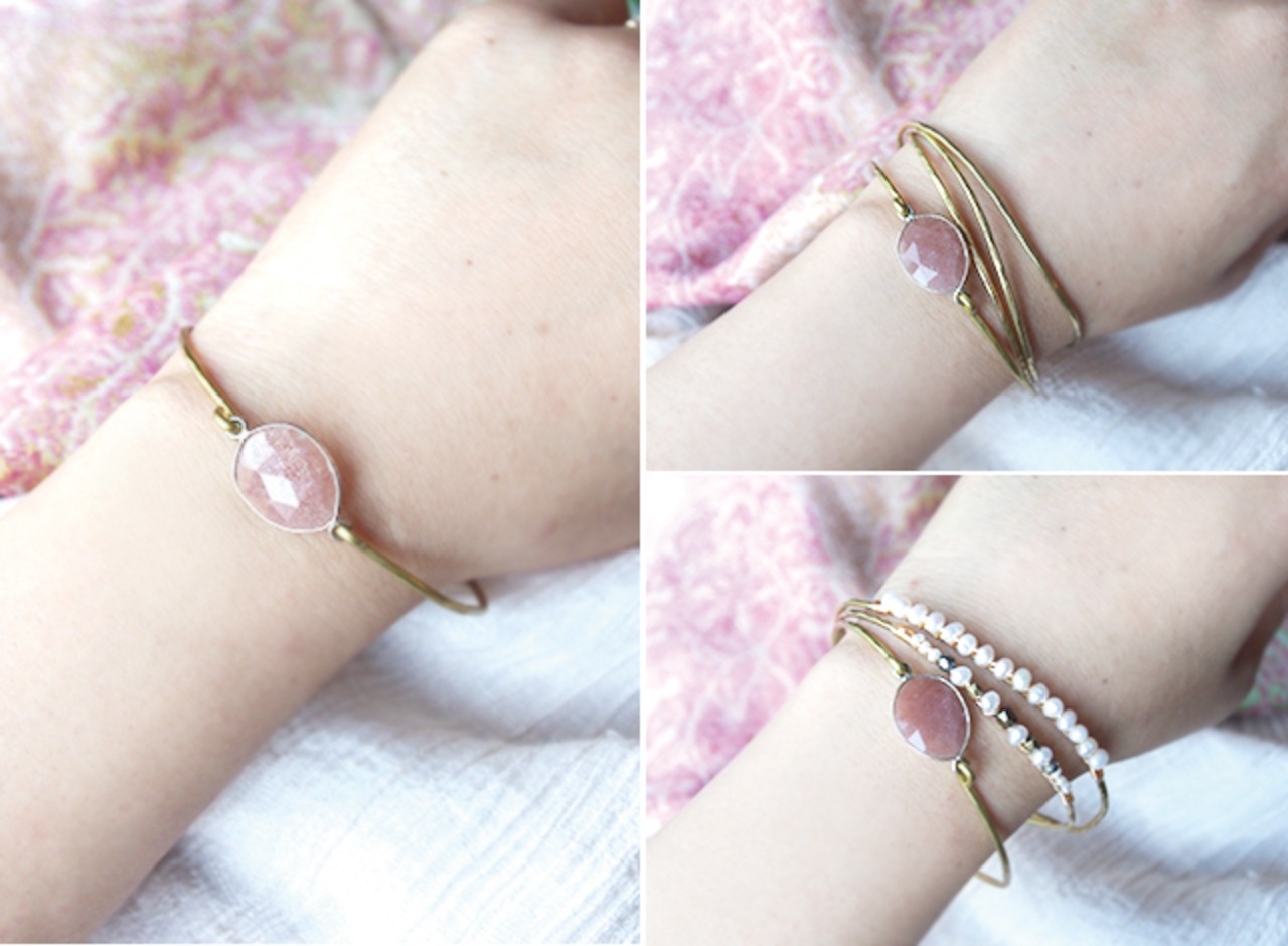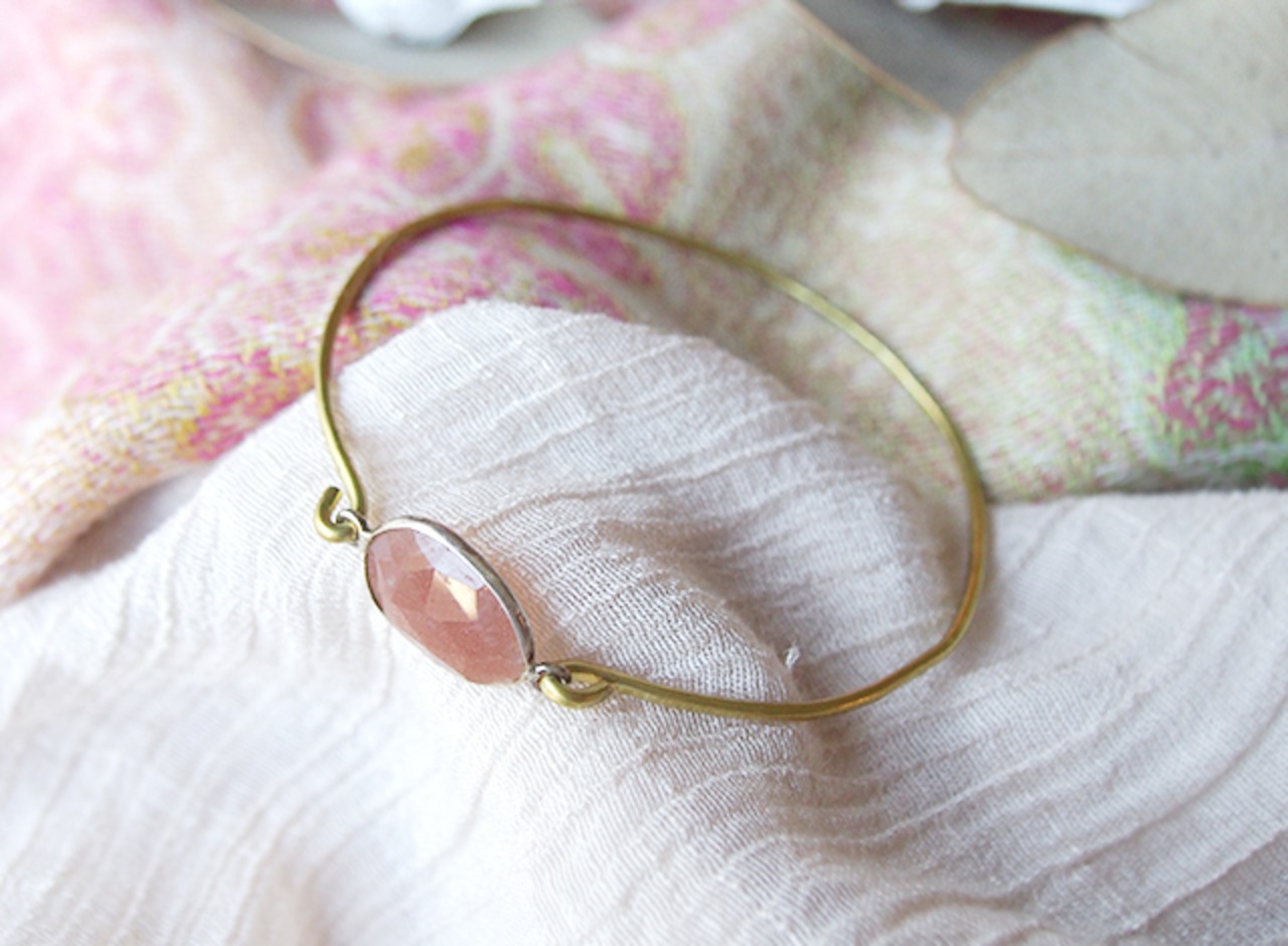 オレンジムーンストーンの真鍮バングル