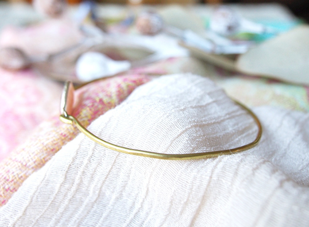 ゴールド色があたたかい真鍮と合わせ、シンプルで華奢なバングルにしました。