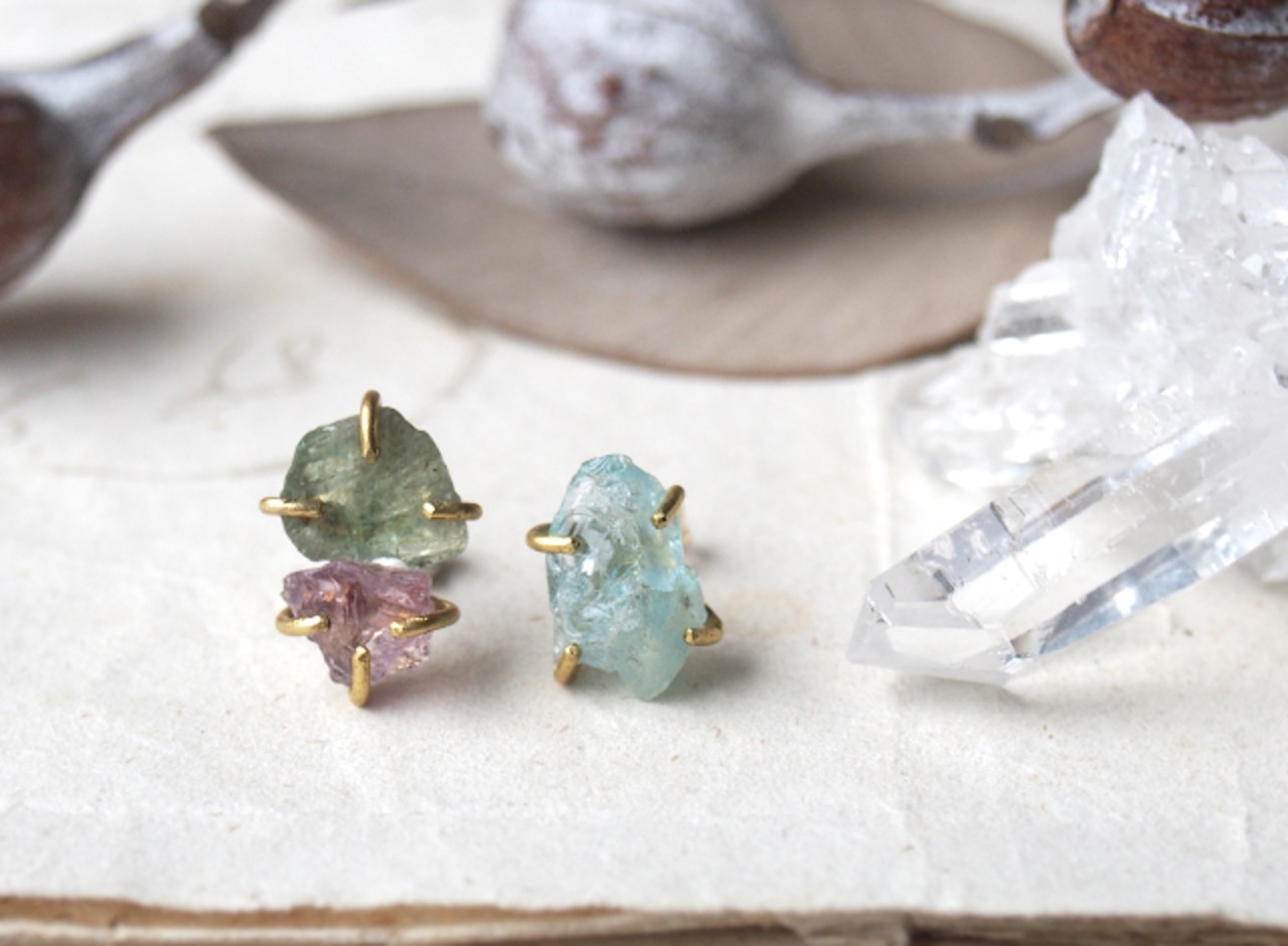 【一点物】原石のアパタイト・スピネル・アクアマリンのピアス