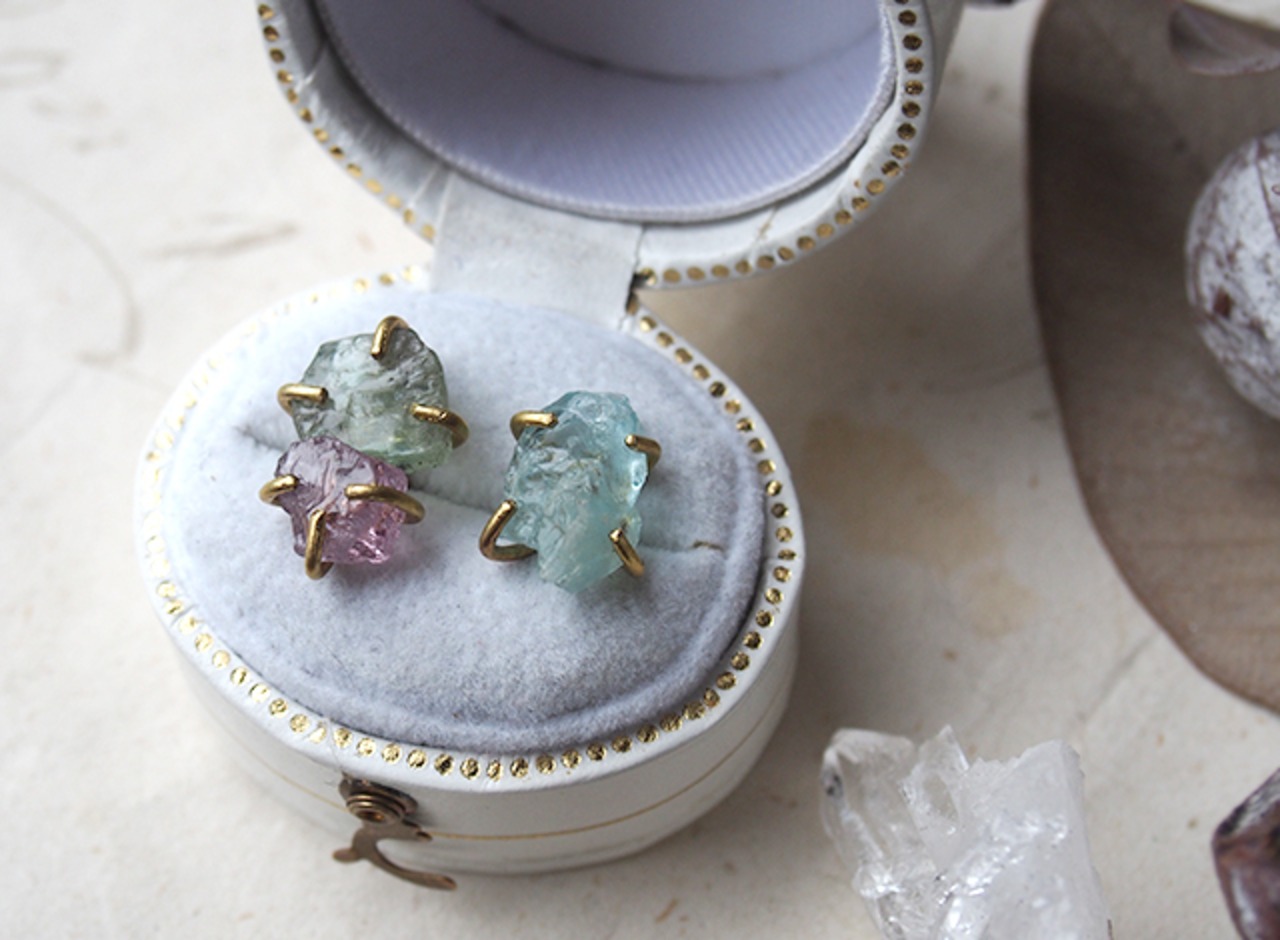 色味や表情が違う大粒の原石を組み合わせた、ラフでアシンメトリーなデザインです。