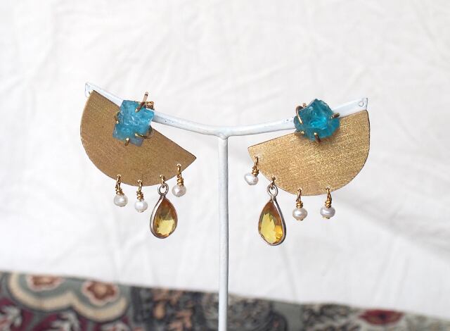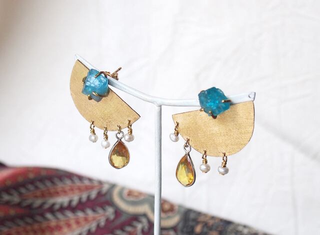 素材:アパタイト(マダガスカル産)・イエローサファイア・パール・真鍮・シルバー・K14ゴールドフィルド(ピアス金具)