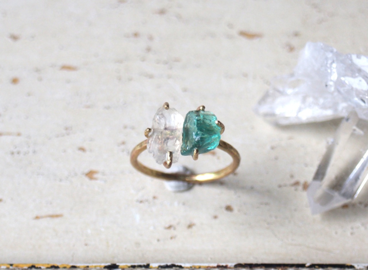 原石のムーンストーンとアパタイトのリング(左/1.8mm幅) ¥4000