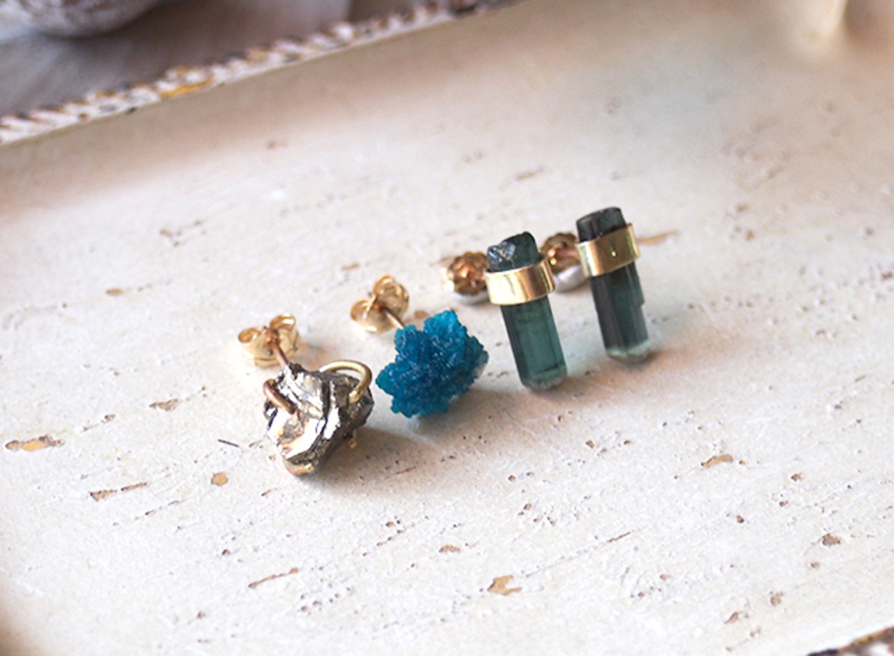 原石のブルートルマリンのピアス(上段真ん中/帯留め/ポスト上寄り) ¥3800