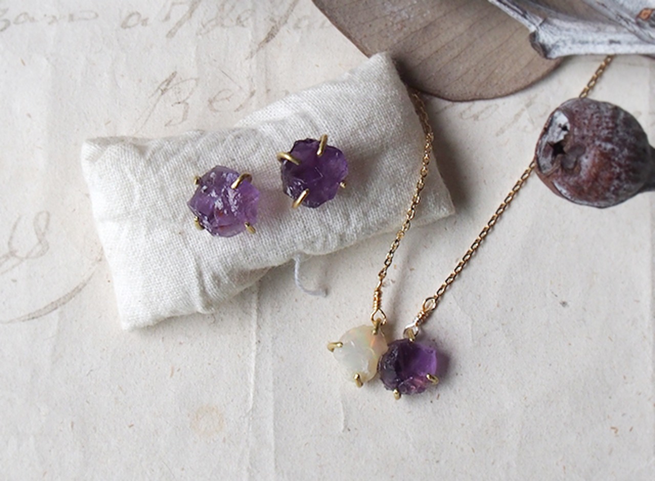 原石のアメジストのピアス ¥3900