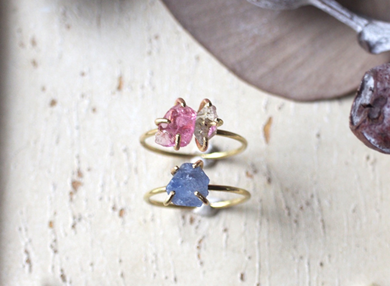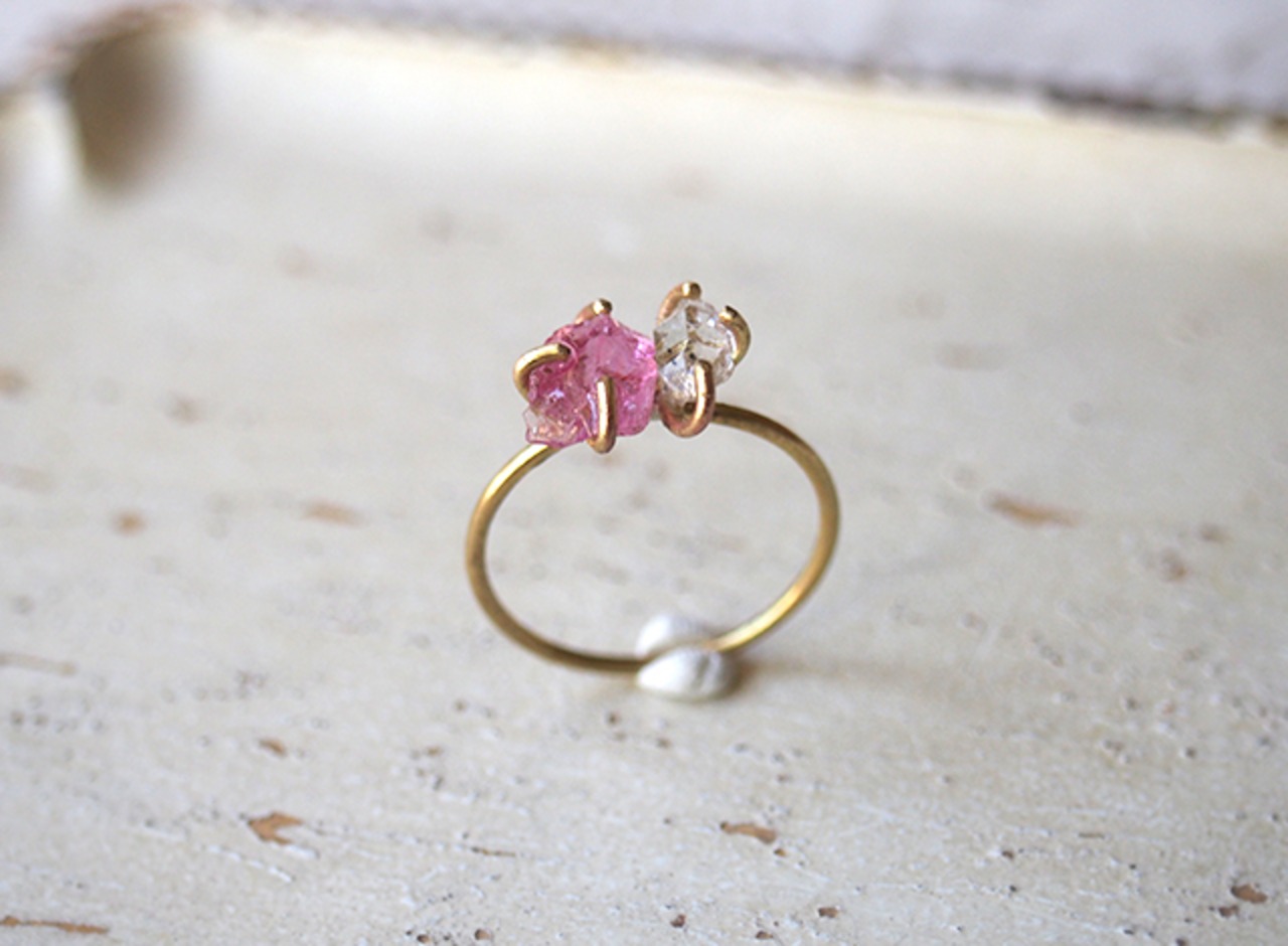 原石のピンクトルマリンとダイヤモンドクォーツのリング ¥3900