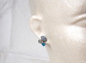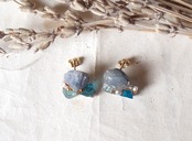 素材:サファイア・アパタイト・パール・K14ゴールドフィルド(ピアス金具)・合成漆・真鍮粉